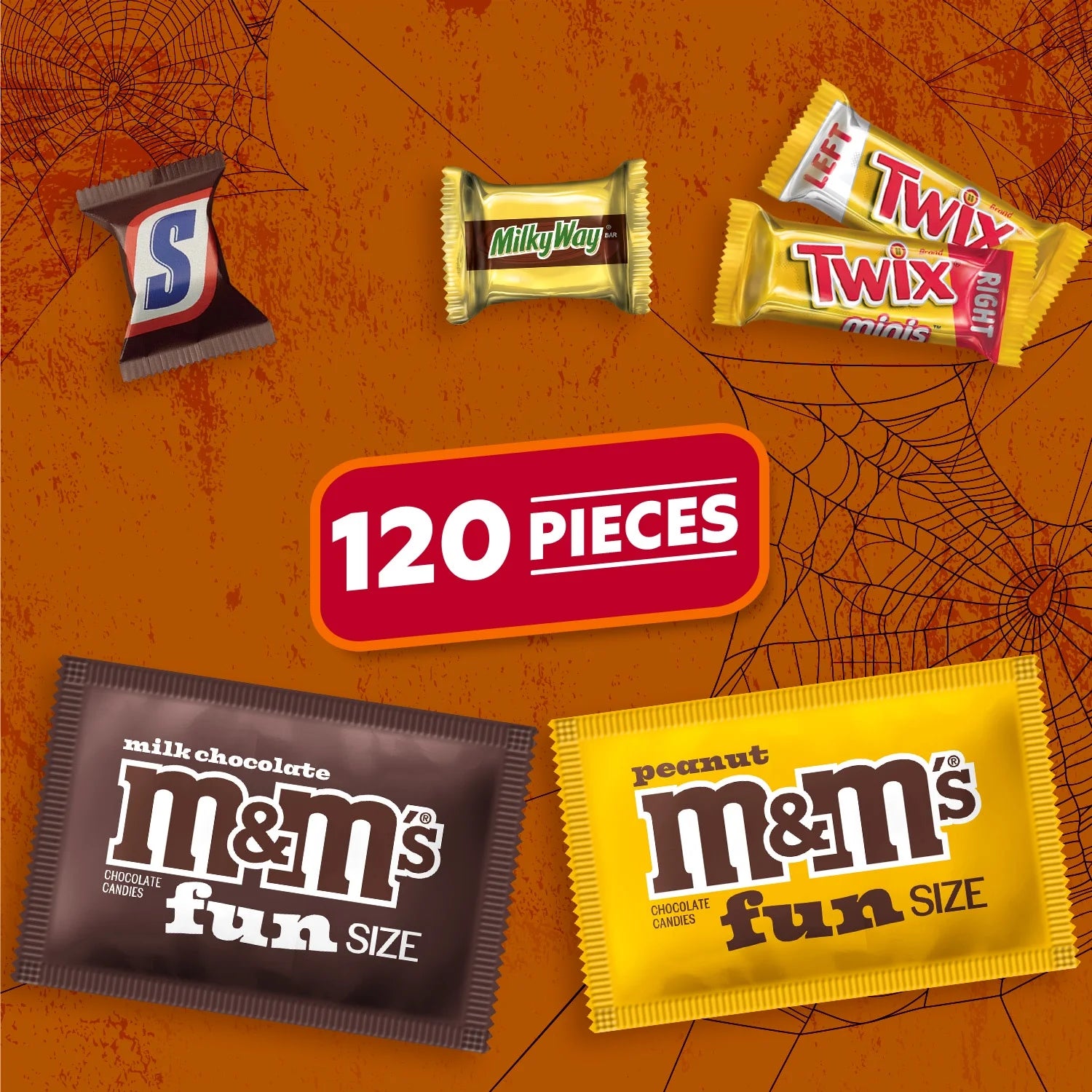 M&M'S, Snickers, Twix & Milky Way Chocolate Halloween Candy Variety Pack, 120 Pieces Bulk Bag