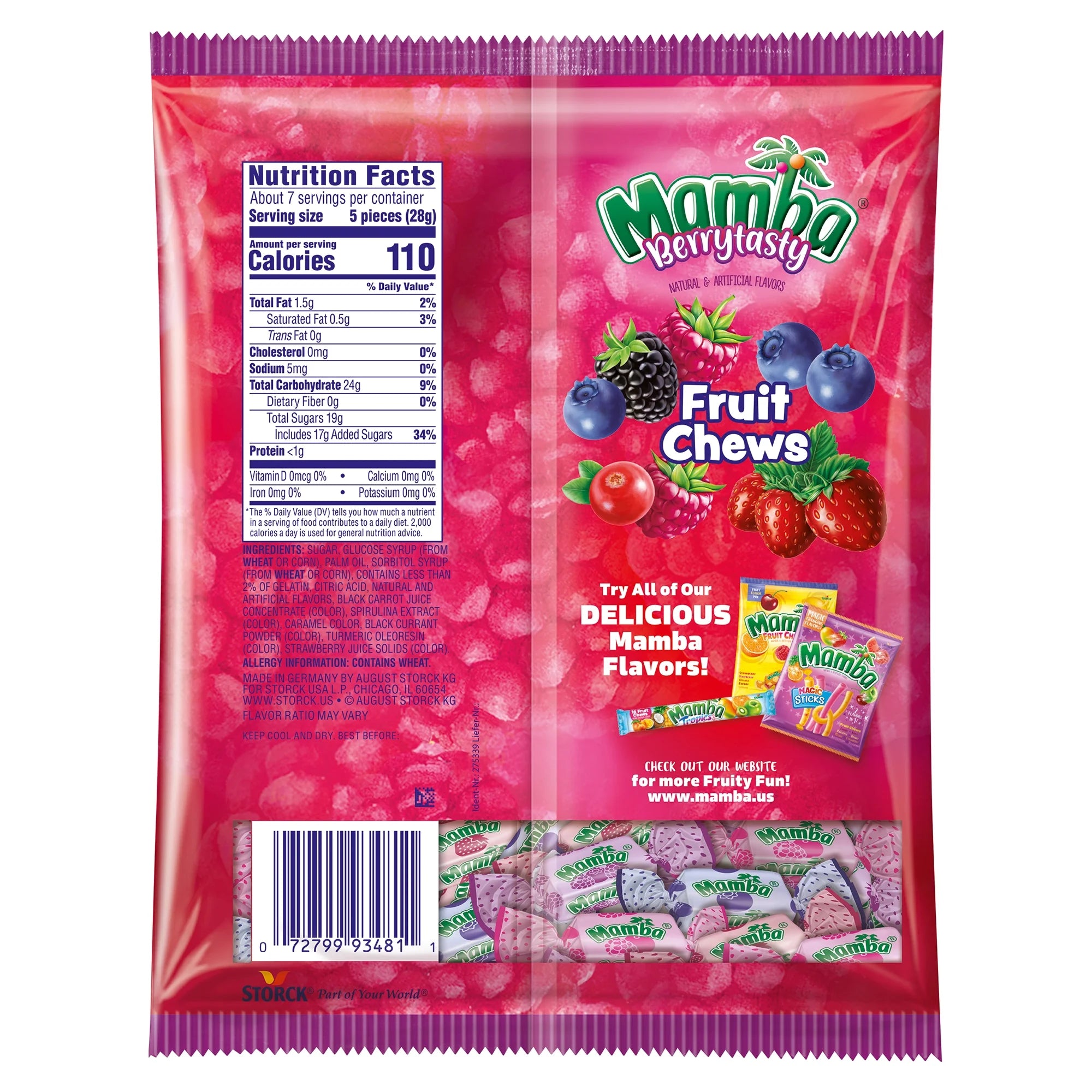 • One shareable, 7.05 oz. bag of individually wrapped Mamba Berry Tasty Fruit Chews chewy candy