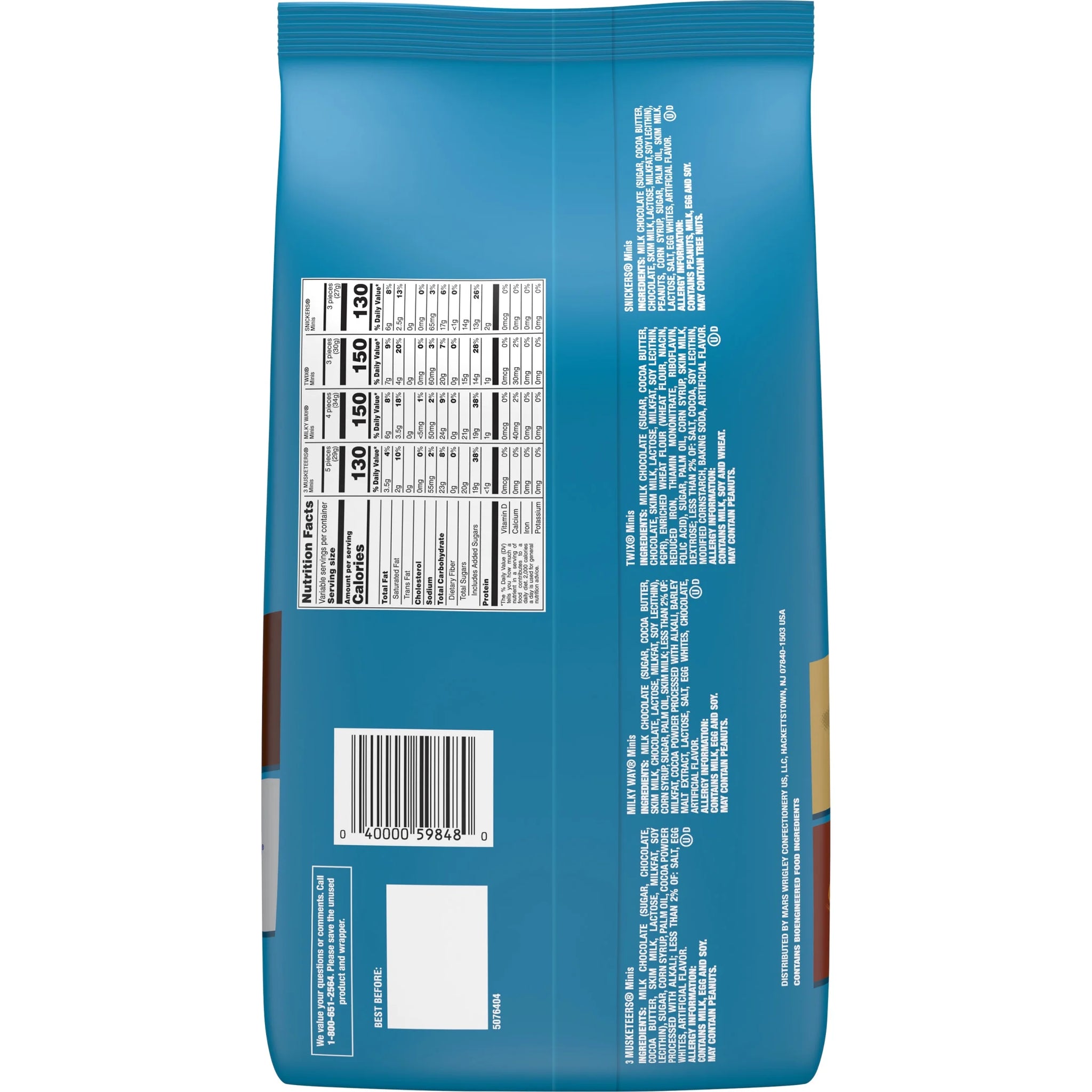 Enjoy this assortment of mini classic milk chocolate bars with BIG taste! SNICKERS, TWIX, MILKY WAY & 3 MUSKETEERS Minis Variety Bag is perfect for all occasions. Ideal for party favors, movie nights, candy bowls, and piñatas, individually wrapped mini candy bars ensure lasting freshness for all of life's sweet moments. Pack them in lunches for a sweet surprise or take this party size bag on the road for your next outdoor adventure. Don't stop at just unwrapping and enjoying these candies, add them to your favorite dessert and baking recipes. These chocolates are perfect for any momentous occasion. Celebrate graduations, baby showers, wedding receptions, even Mother's Day with these mini milk chocolate bars. No matter the celebration or occasion, keep this milk chocolate candy bar assortment on hand. With SNICKERS, TWIX, MILKY WAY, and 3 MUSKETEERS, there is something for everyone. You can't go wrong! Add to your cart today.