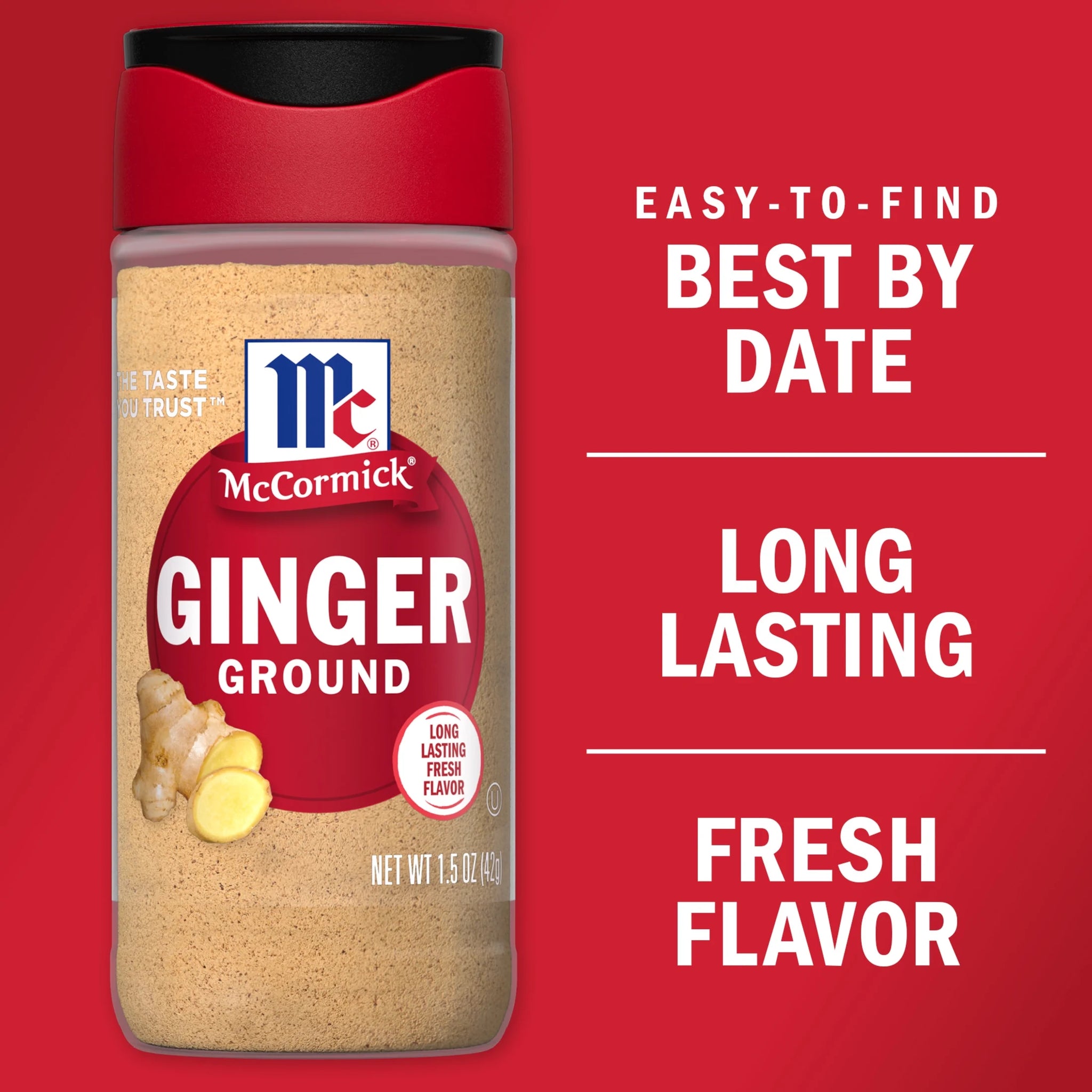 McCormick Ground Ginger, 1.5 oz Bottle. Ginger is a rhizome, a knobby root-like bulb that grows underground. McCormick hand-picks its ginger for sweet and zesty flavor - perfect for sweet desserts, savory dishes and especially holiday recipes. Ginger was one of the first spices brought from Asia to the Western world by the spice caravans. Thanks to its warm, spicy flavor, it's enjoyed all over the world. Holiday desserts like spice cakes, pumpkin pie and gingerbread depend on its spicy warmth. It has natural affinity with fruit, vegetables and meat, making it the perfect go-to for spicing up a glaze for salmon, meatballs or carrots, or the syrup for poached fruit. Essential to the Asian kitchen, ginger is used in stir-fries, soups, curries, stews, chai tea and spice blends. This McCormick Ground Ginger is in a Plastic bottle that is 1.5 ounces. Store this shelf-stable item at an ambient temperature.