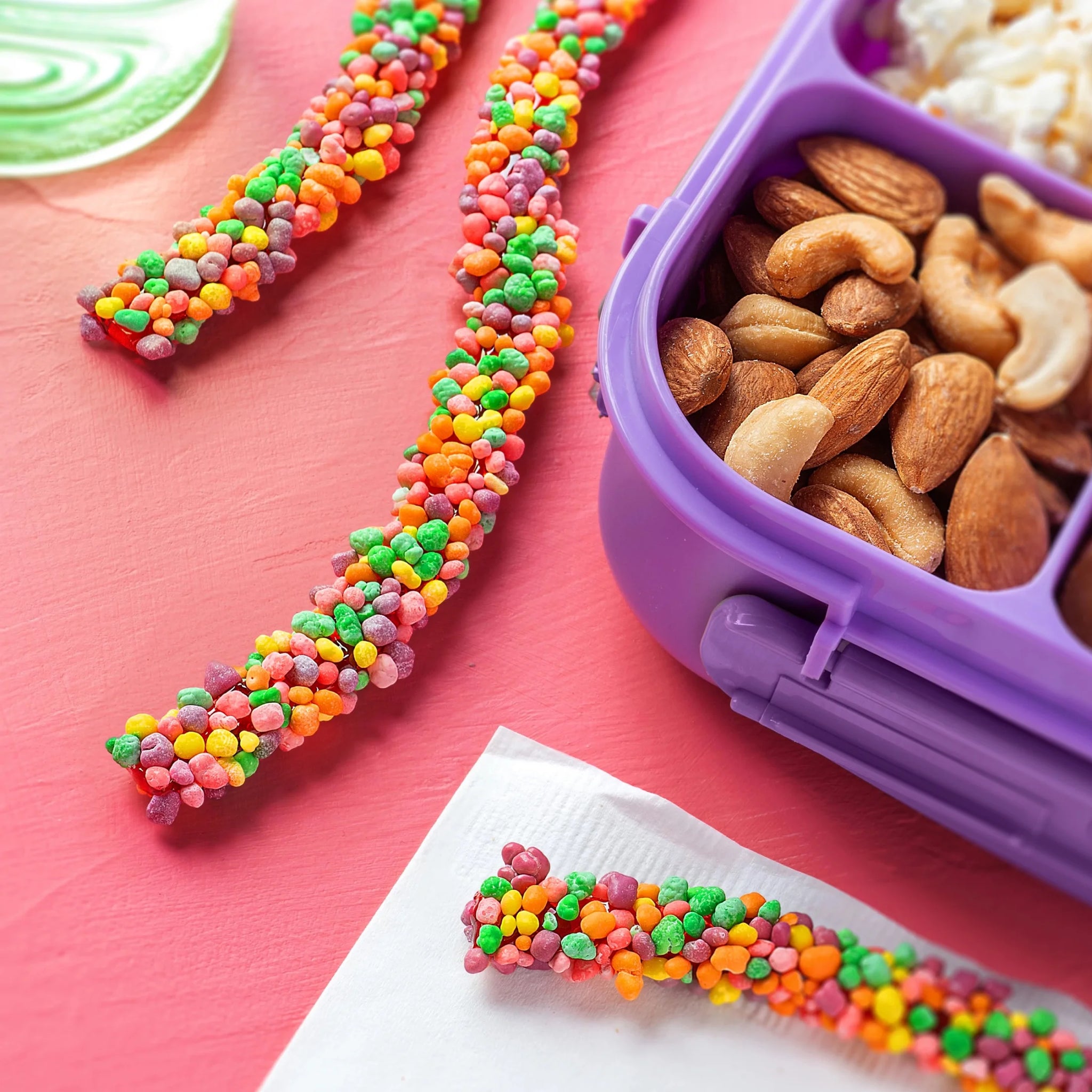 - TASTY FUN: NERDS Rope candy (0.92 oz) creates yummy fun by coating a red gummy center with tiny, tangy rainbow-colored NERDS candies for a one-of-a-kind delicious flavor revolution