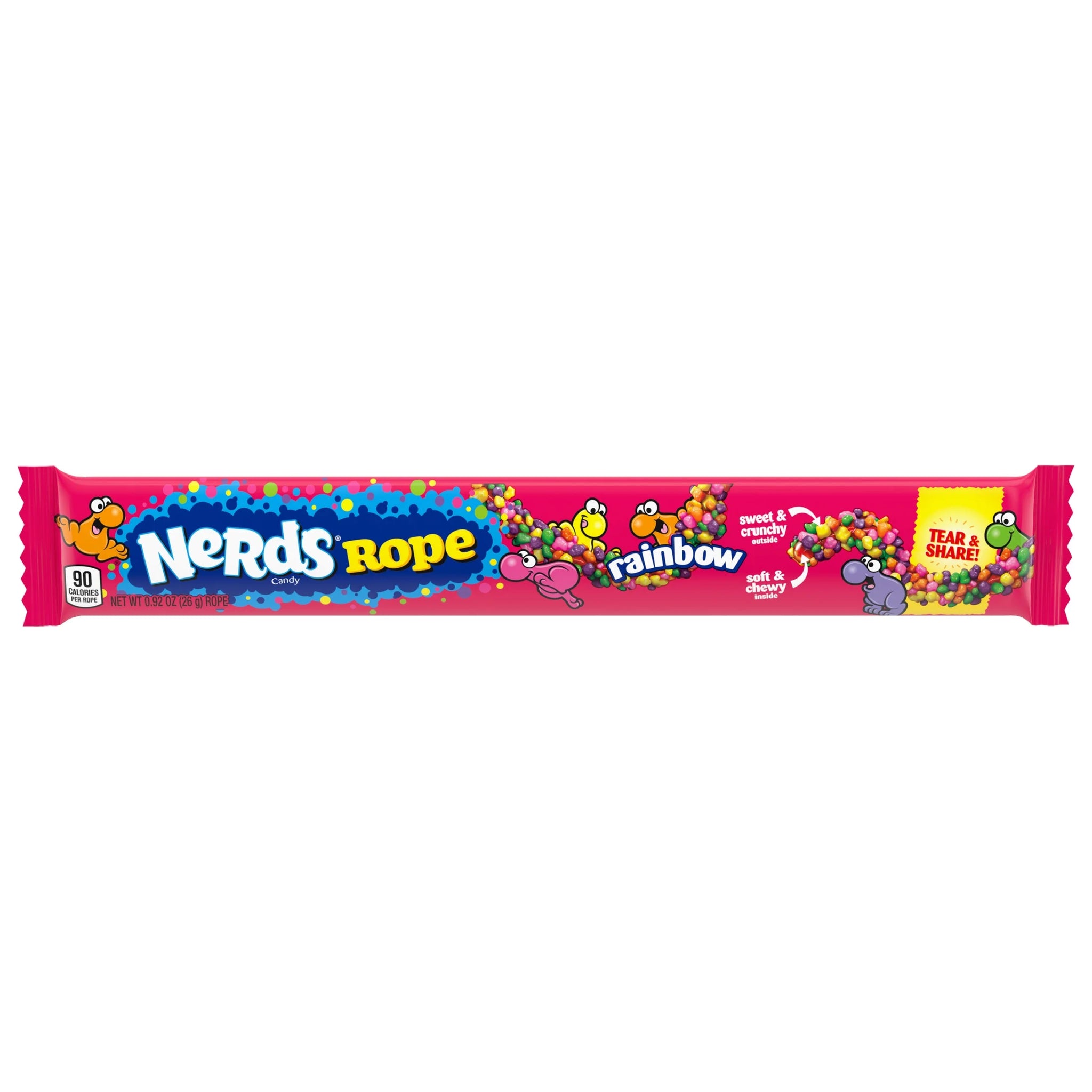 - CHEWY & CRUNCHY AT THE SAME TIME: This delicious NERDS Rope Rainbow is a chewy, fruity rope covered in crunchy Rainbow NERDS