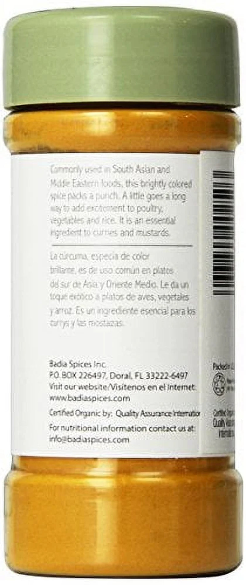 Commonly used in South Asian and Middle Eastern foods, Badia Organic Turmeric is a brightly colored spice that packs a punch. A little goes a long way to add excitement to poultry, vegetables and rice. It is an essential ingredient to curries and mustards.