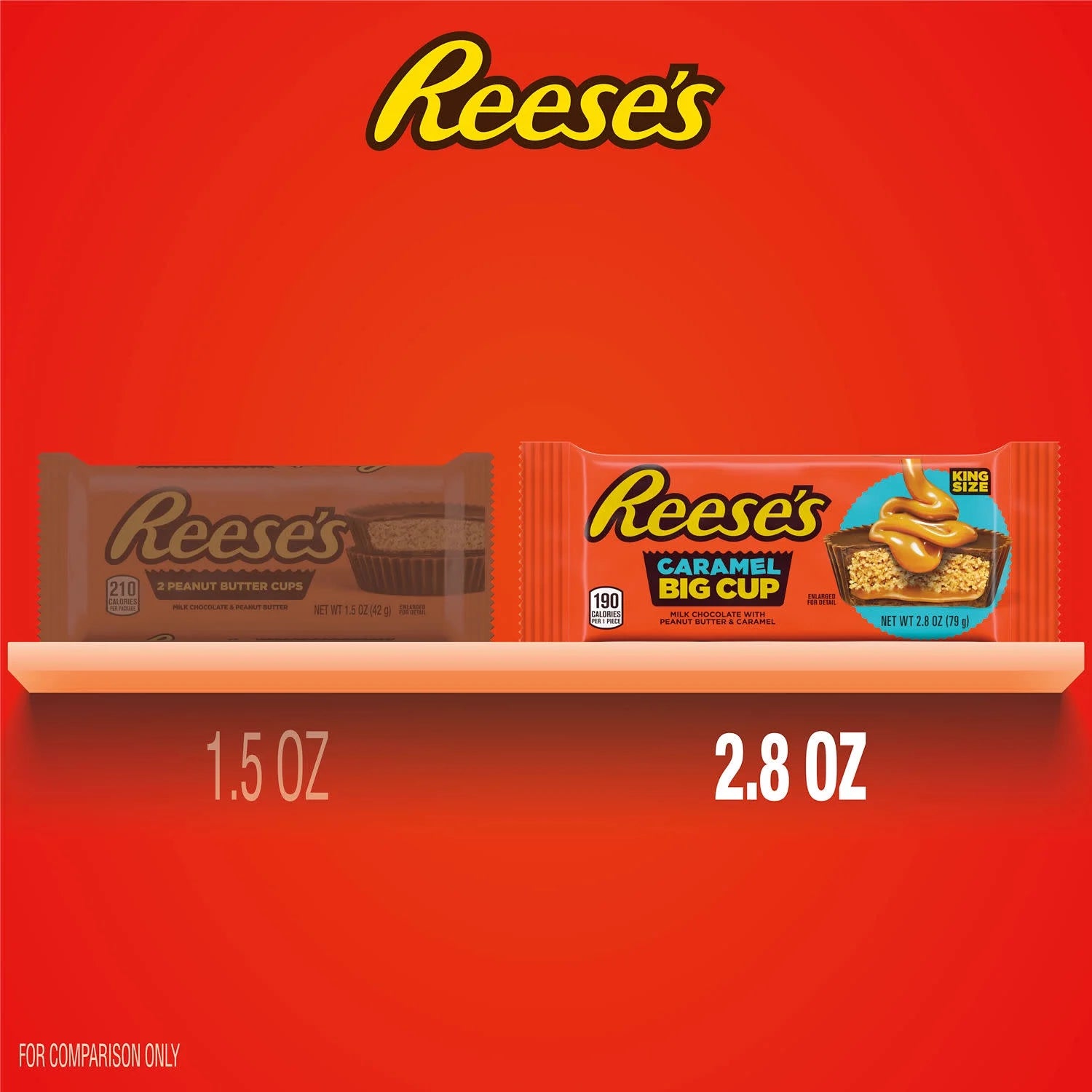 - Contains one (1) 2.8-ounce pack of REESE'S Big Cup Caramel Milk Chocolate King Size Peanut Butter Cups Candy