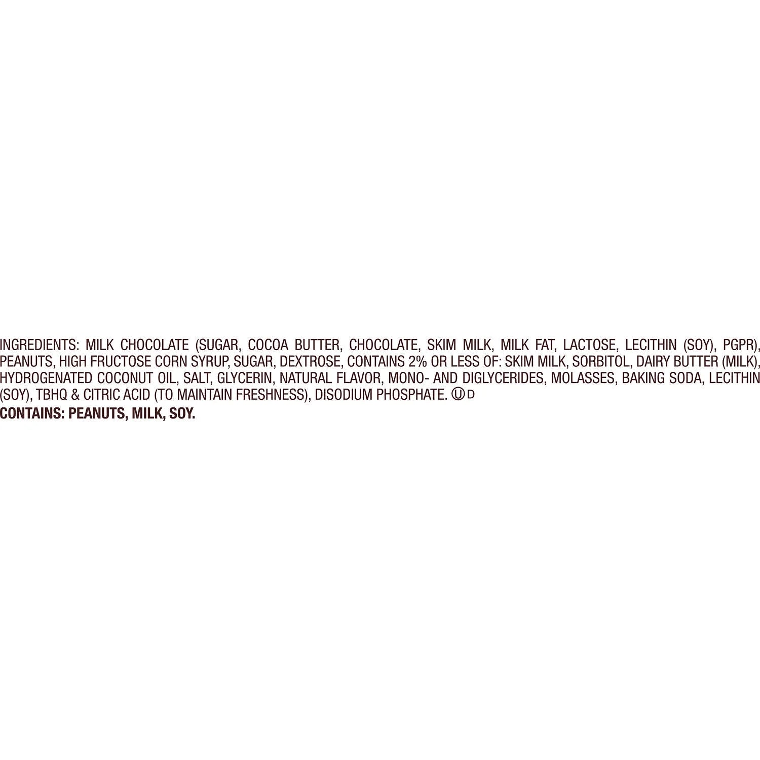 MILK CHOCOLATE (SUGAR, COCOA BUTTER, CHOCOLATE, SKIM MILK, MILK FAT, LACTOSE, LECITHIN (SOY), PGPR), PEANUTS, HIGH FRUCTOSE CORN SYRUP, SUGAR, DEXTROSE, CONTAINS 2% OR LESS OF: SKIM MILK, SORBITOL, DAIRY BUTTER (MILK), HYDROGENATED COCONUT OIL, SALT, GLYCERIN, NATURAL FLAVOR, MONO- AND DIGLYCERIDES, MOLASSES, BAKING SODA, LECITHIN (SOY), TBHQ & CITRIC ACID (TO MAINTAIN FRESHNESS), DISODIUM PHOSPHATE./div>