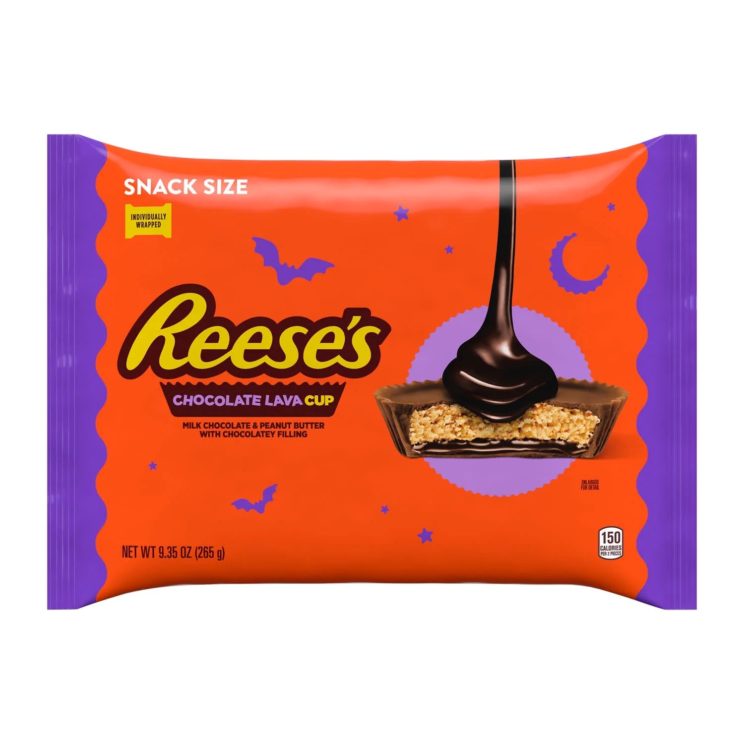 - Contains one (1) 9.35-ounce bag of REESE'S Chocolate Lava Milk Chocolate Snack Size Peanut Butter Cups Candy