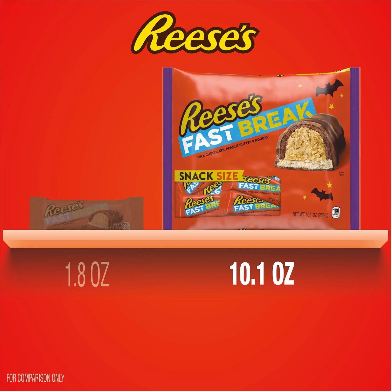 - Contains one (1) 10.1-ounce bag of REESE'S FAST BREAK Milk Chocolate, Peanut Butter and Nougat Snack Size Halloween Candy Bars