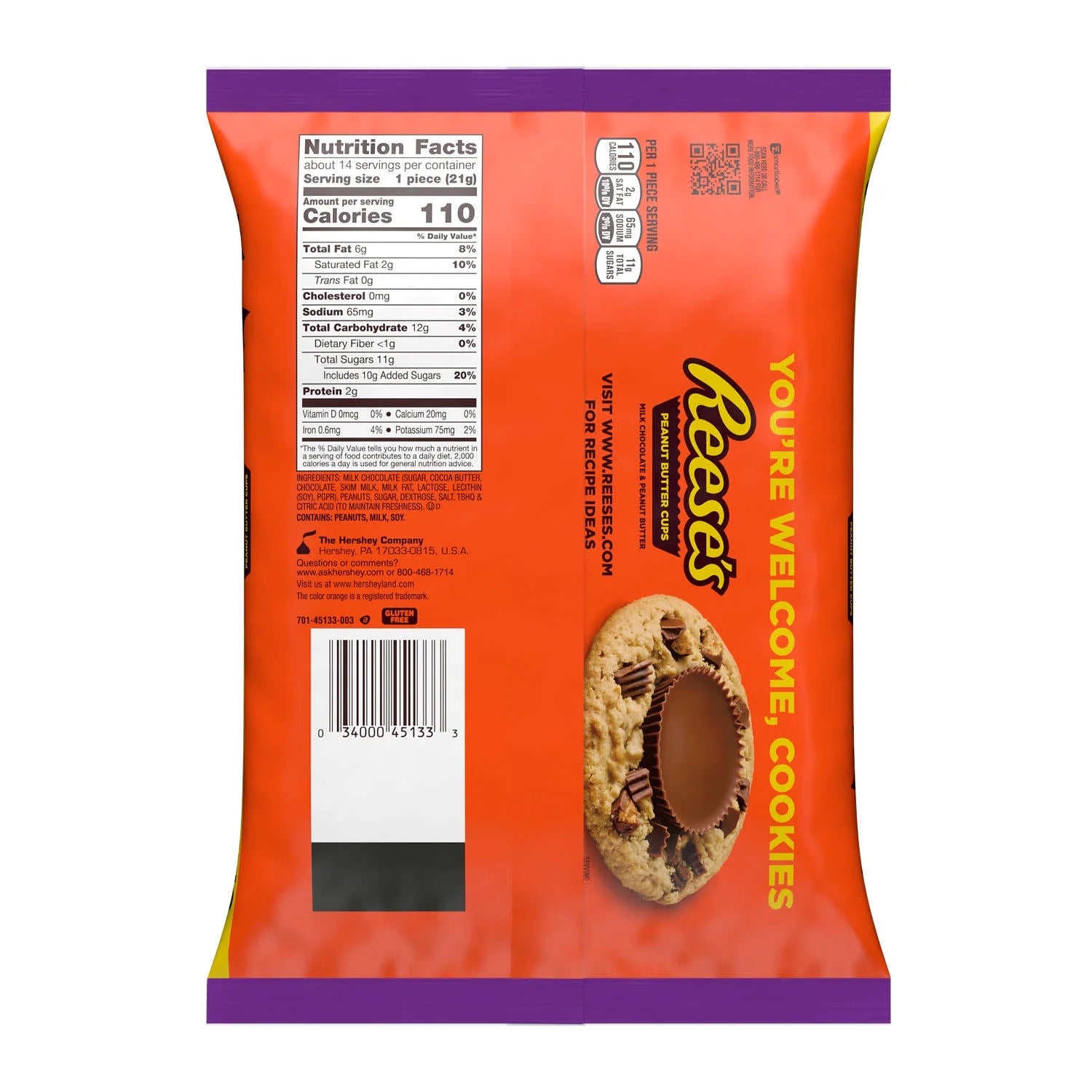 - Individually wrapped, kosher and gluten free REESE'S peanut butter cups packaged in a Halloween themed candy bag