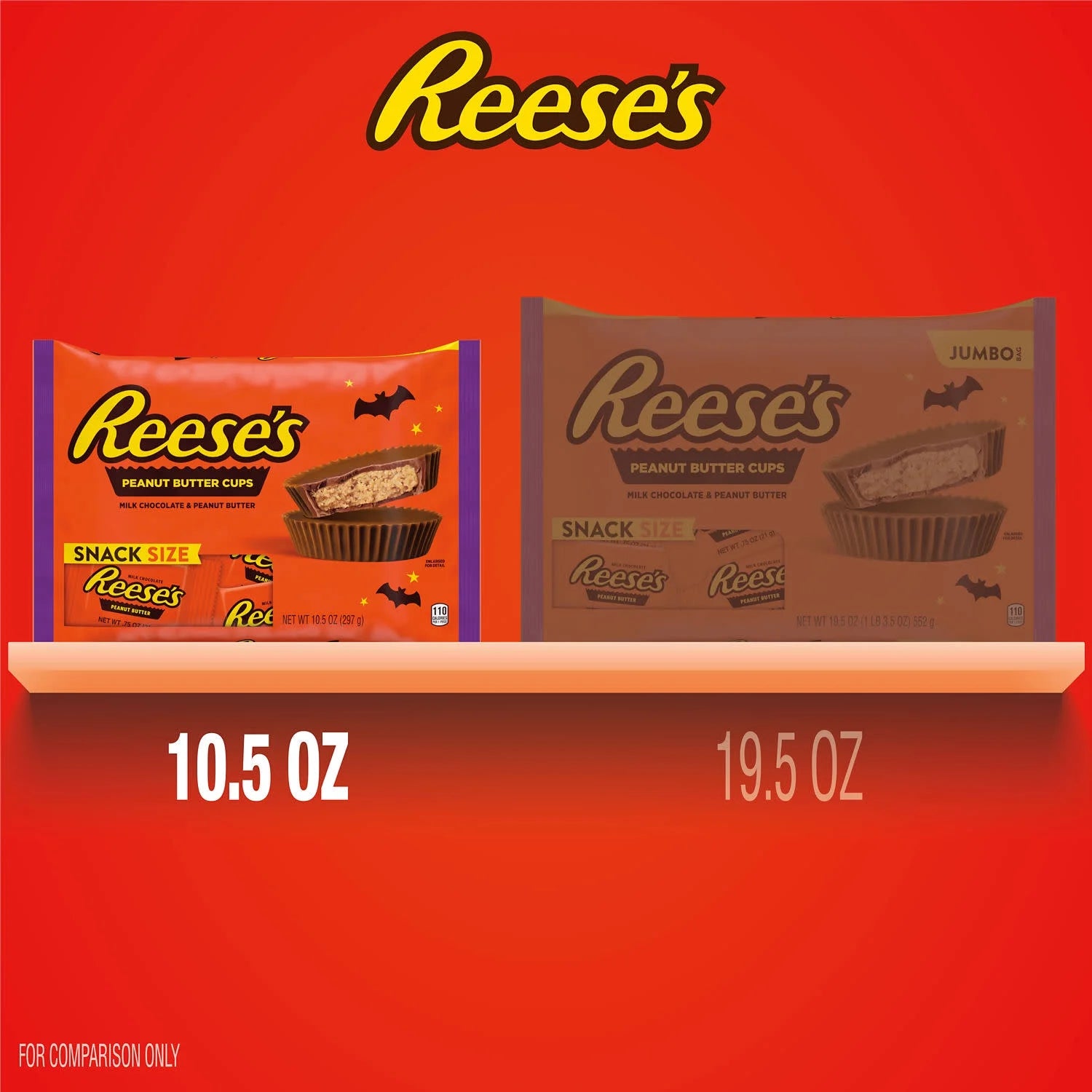 Prepare for trick or treaters, costume party guests and your own family movie nights with REESE'S milk chocolate snack size peanut butter cups candies. These kosher and gluten free sweets are the first Halloween candy everyone goes for in the candy bowl, right? Place a few of these snack size peanut butter cups in lunch boxes and candy dishes for everyone to enjoy throughout the Halloween season. With this candy bag, you can even share individually wrapped milk chocolate peanut butter cups candies during fall sporting events, birthday parties and every moment in between.