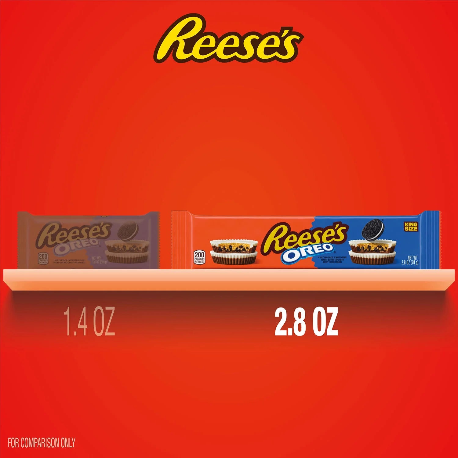 - Contains one (1) 2.8-ounce pack of REESE'S OREO Milk Chocolate and White Creme King Size Peanut Butter Cups Candy