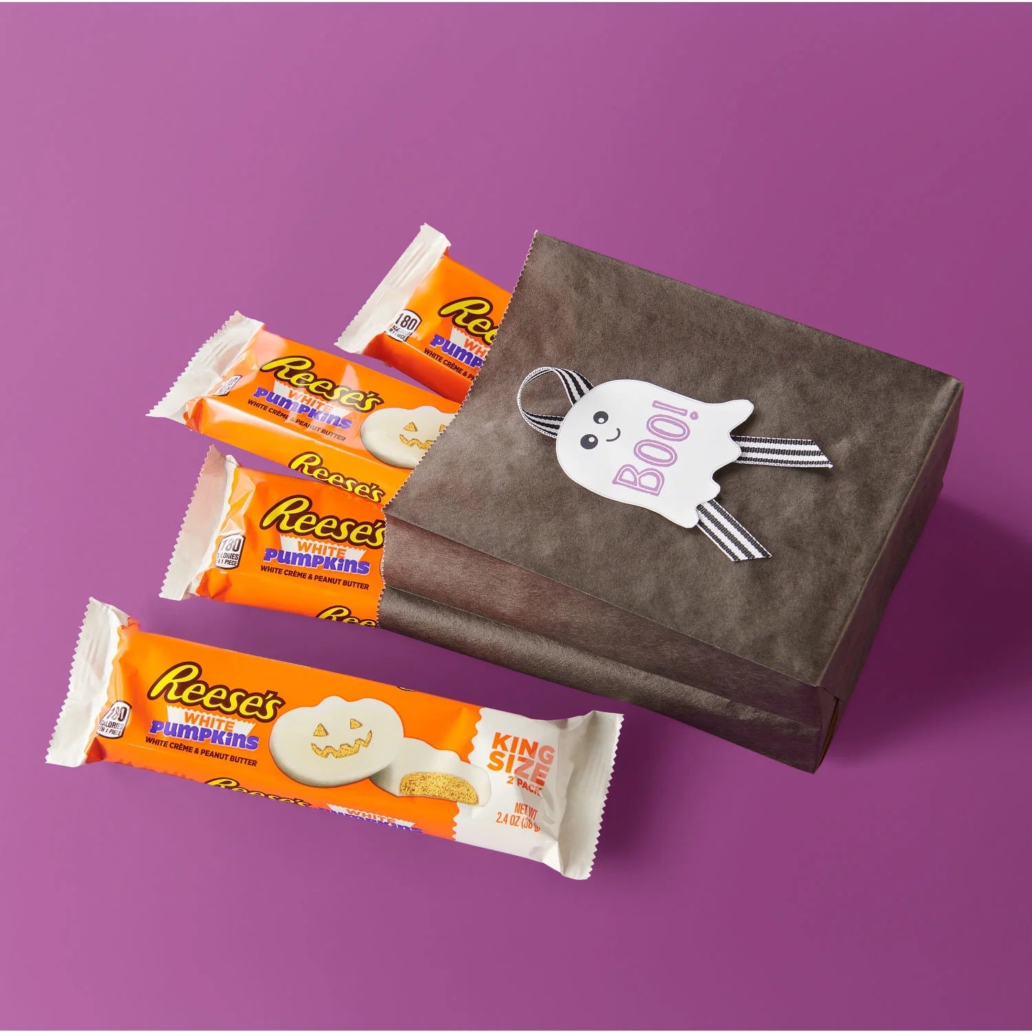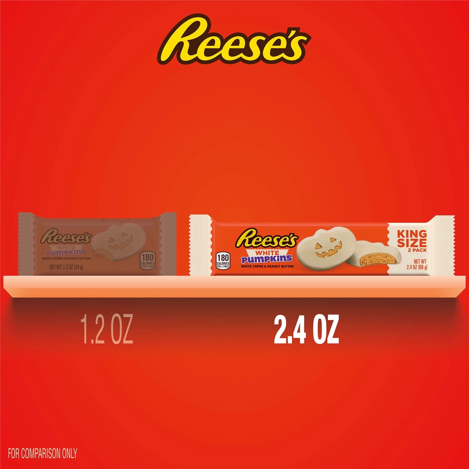 - Contains one (1) 2.4-ounce, 2-piece king size pack of REESE'S White Creme Peanut Butter Pumpkins Halloween Candy