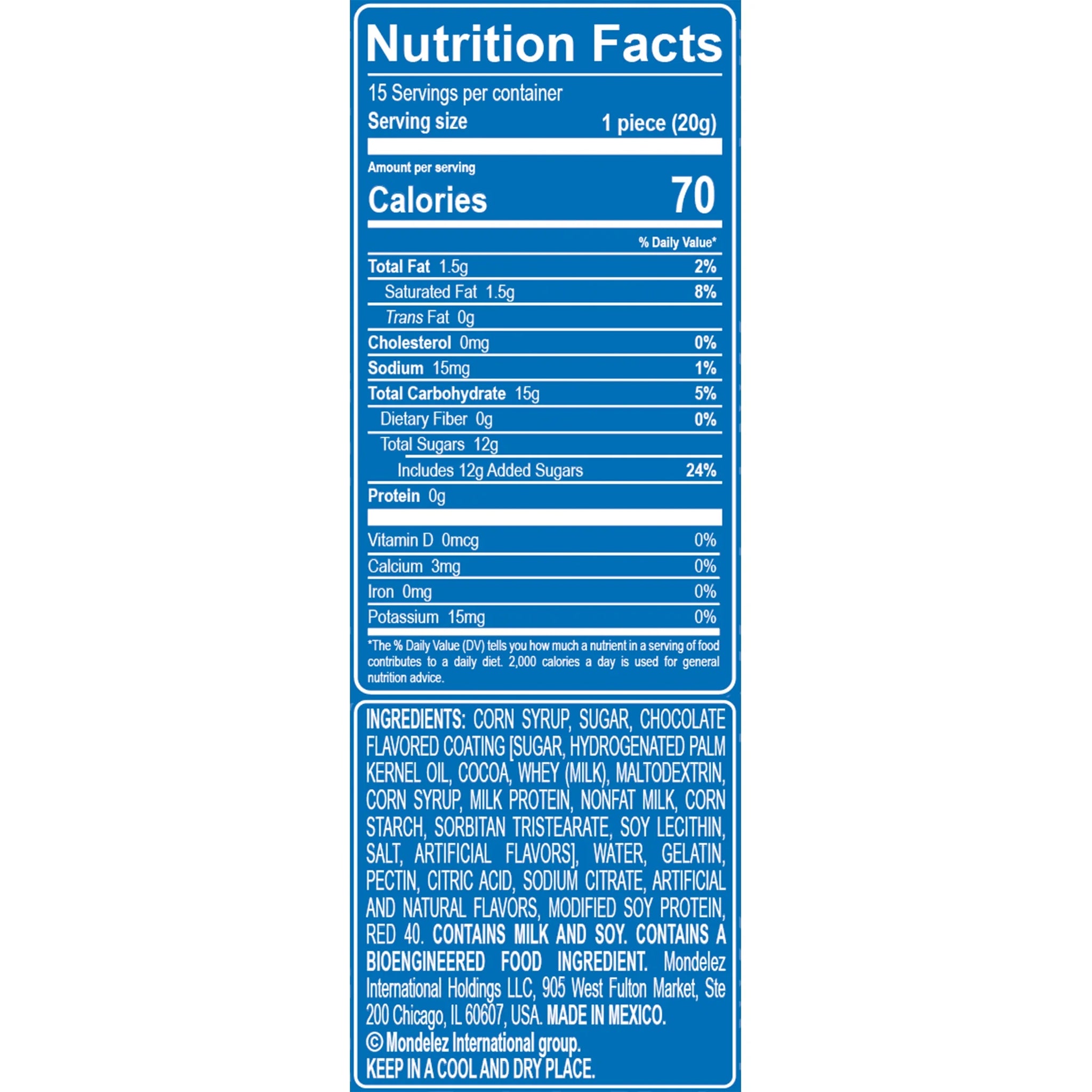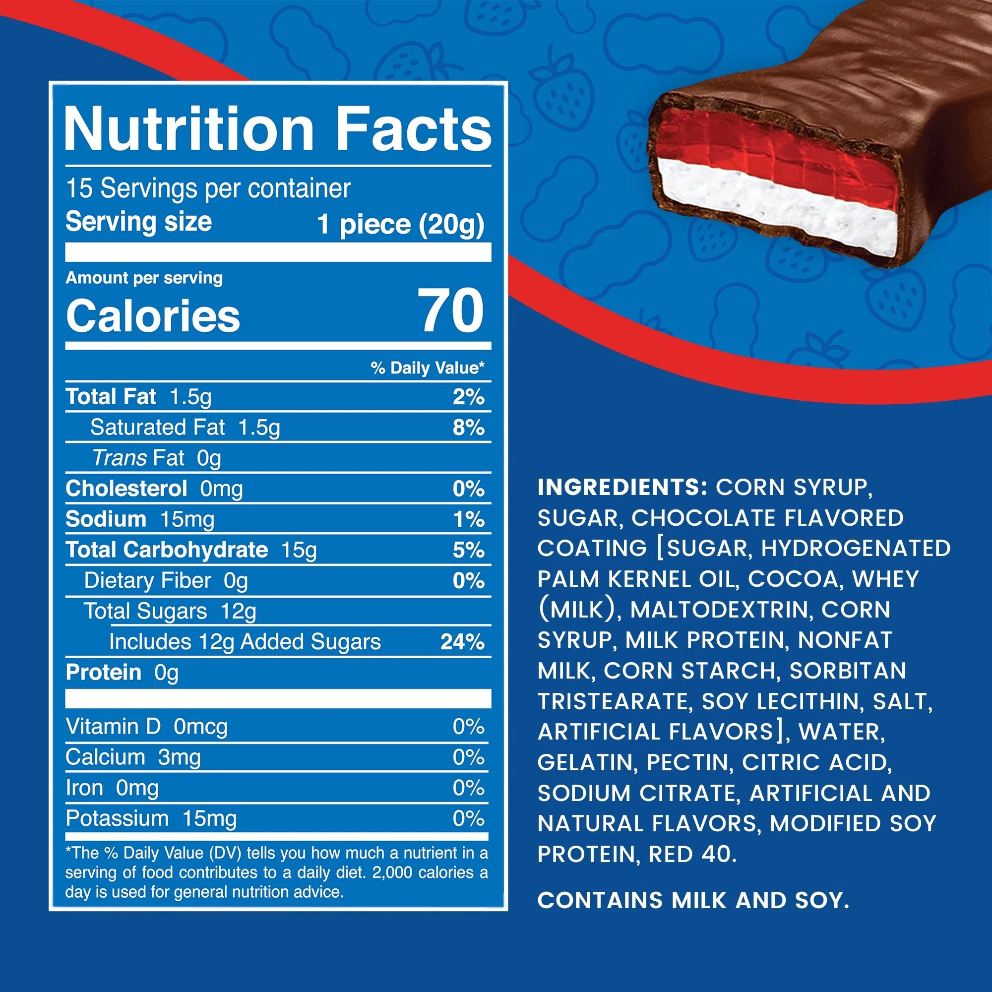 Corn Syrup, Sugar, Chocolate Flavored Coating [Sugar, Hydrogenated Palm Kernel Oil, Cocoa, Whey (Milk), Maltodextrin, Corn Syrup, Milk Protein, Nonfat Milk, Corn Starch, Sorbitan Tristearate, Soy Lecithin, Salt, Artificial Flavors], Water, Gelatin, Pectin, Citric Acid, Sodium Citrate, Artificial And Natural Flavors, Modified Soy Protein, Artificial Color (Red 40)./div>