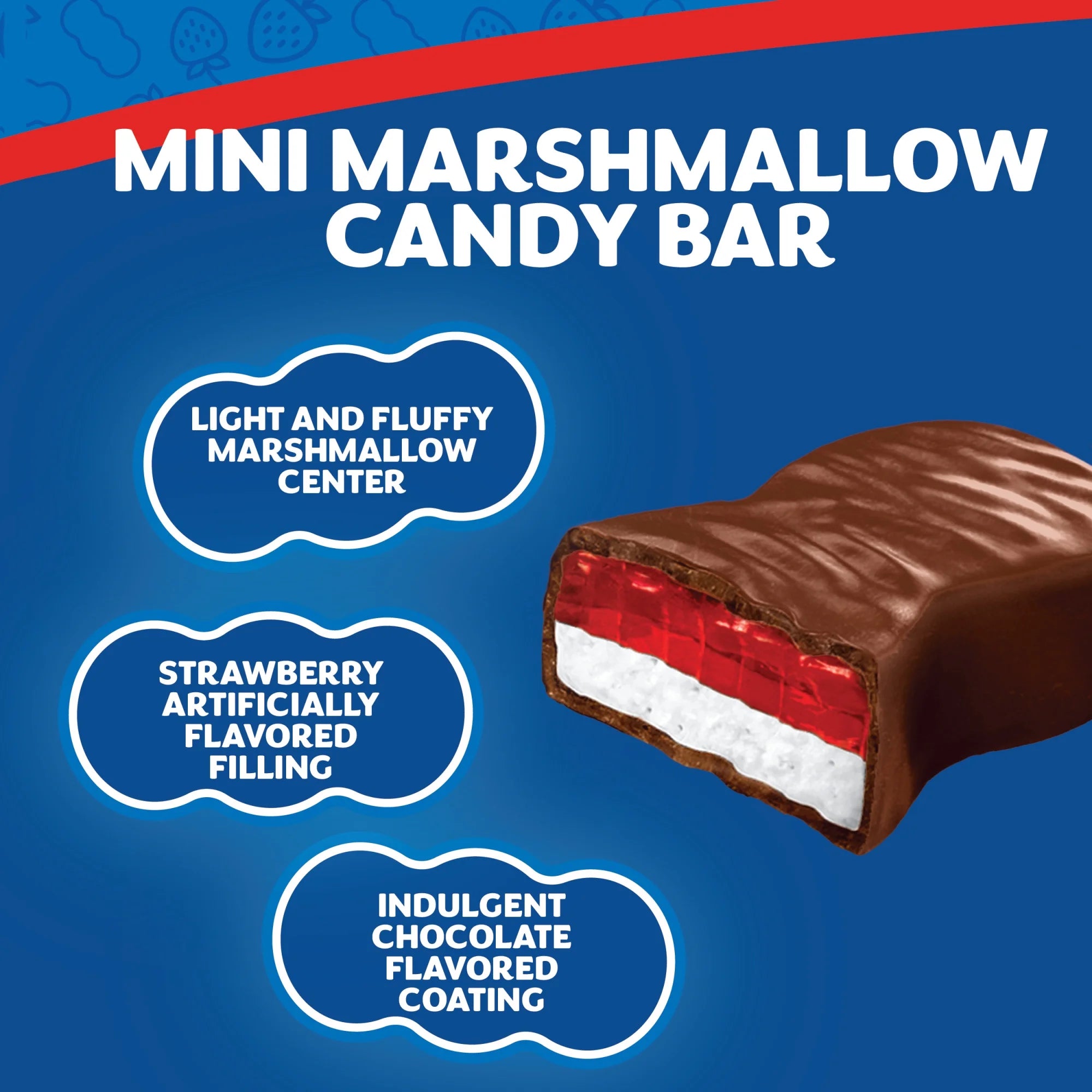 - Mini Mexican candy bar with fluffy marshmallow center topped with strawberry jelly and a chocolate flavored coating