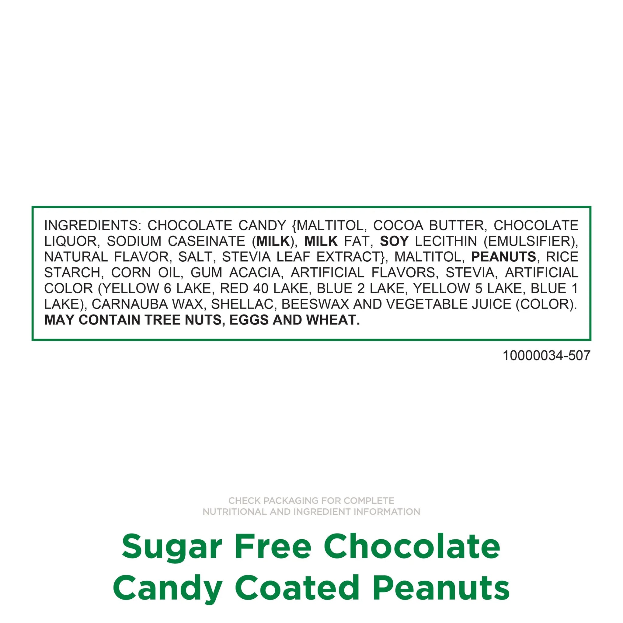 CHOCOLATE CANDY {MALTITOL, COCOA BUTTER, CHOCOLATE LIQUOR, SODIUM CASEINATE (MILK), MILK FAT, SOY LECITHIN (EMULSIFIER), NATURAL FLAVOR, SALT, STEVIA LEAF EXTRACT}, MALTITOL, PEANUTS, RICE STARCH, CORN OIL, GUM ACACIA, ARTIFICIAL FLAVORS, STEVIA, ARTIFICIAL COLOR (YELLOW 6 LAKE, RED 40 LAKE, BLUE 2 LAKE, YELLOW 5 LAKE, BLUE 1 LAKE), CARNAUBA WAX, SHELLAC, BEESWAX AND VEGETABLE JUICE (COLOR)./div>