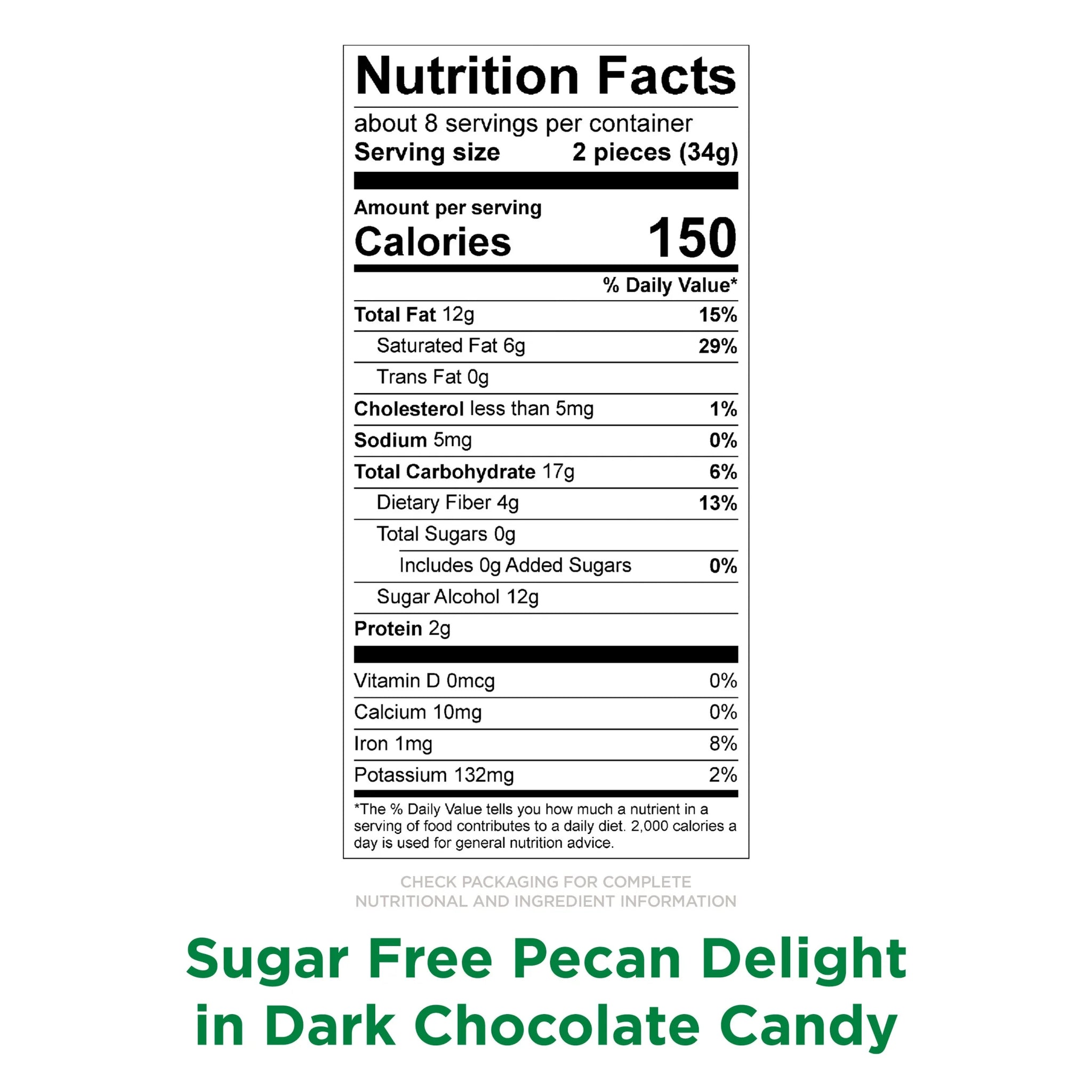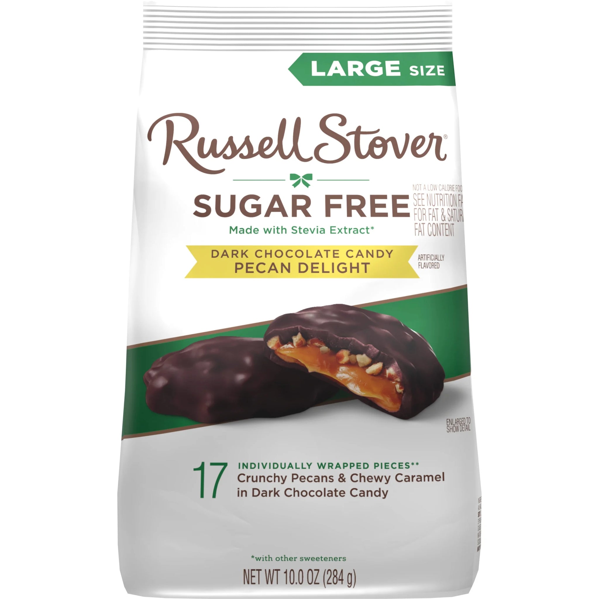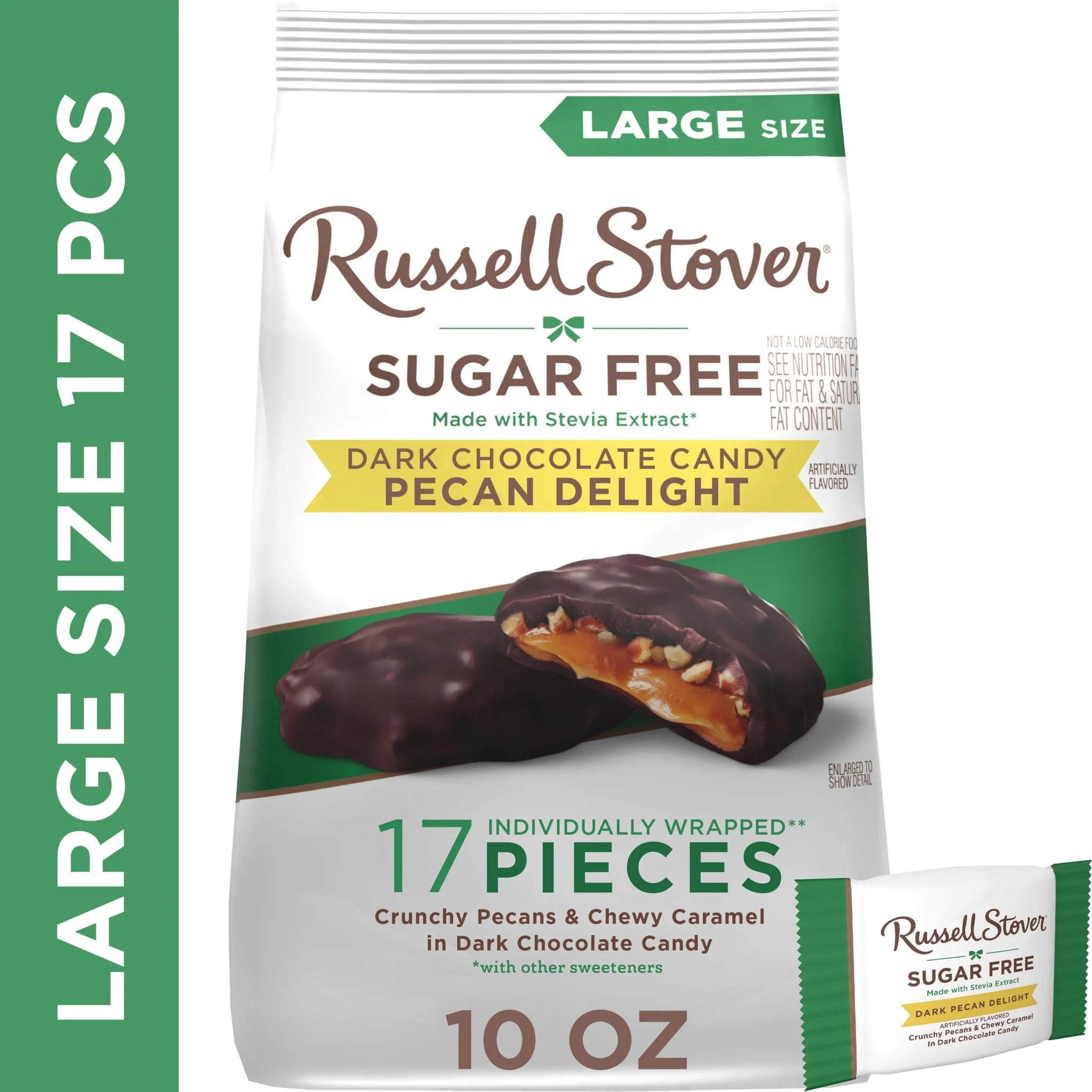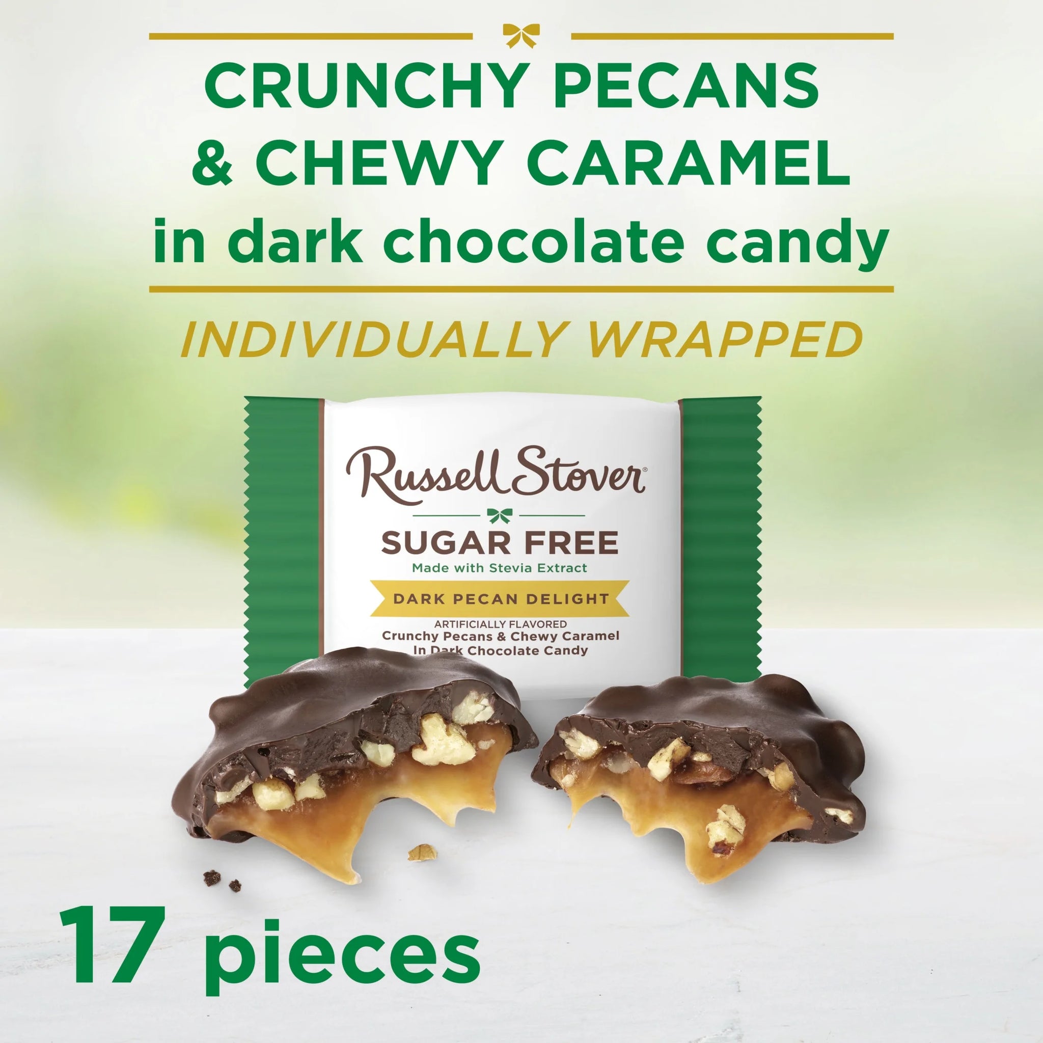 • Sugar Free, Full of Flavor – RUSSELL STOVER Sugar Free Dark Chocolate Pecan Delights are full of crunchy pecans and chewy caramel in decadent dark chocolate, made with Stevia extract for a naturally sweet, no-sugar-added treat.