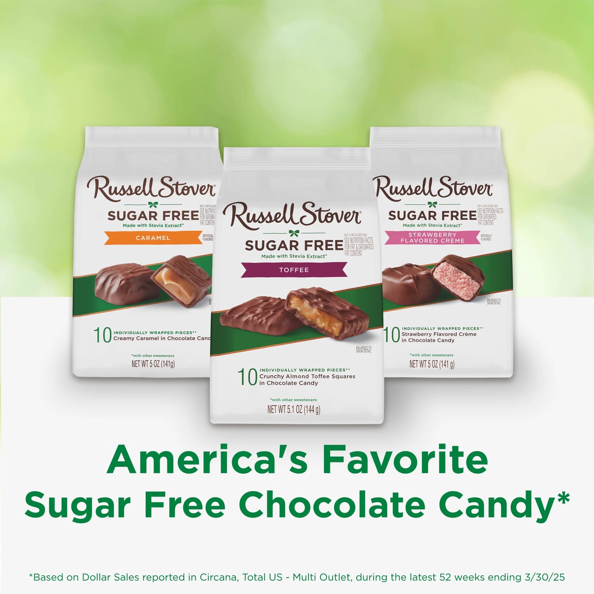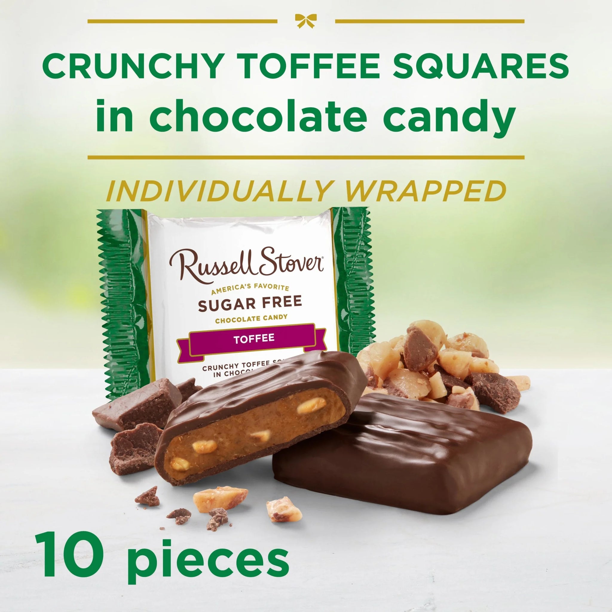 - No sugar, great taste! RUSSELL STOVER Sugar Free Toffee Squares in Chocolate Candy, 5.1 oz., are made with Stevia extract, a plant-based sweetener that delivers all the sweet taste you crave with no added sugar.