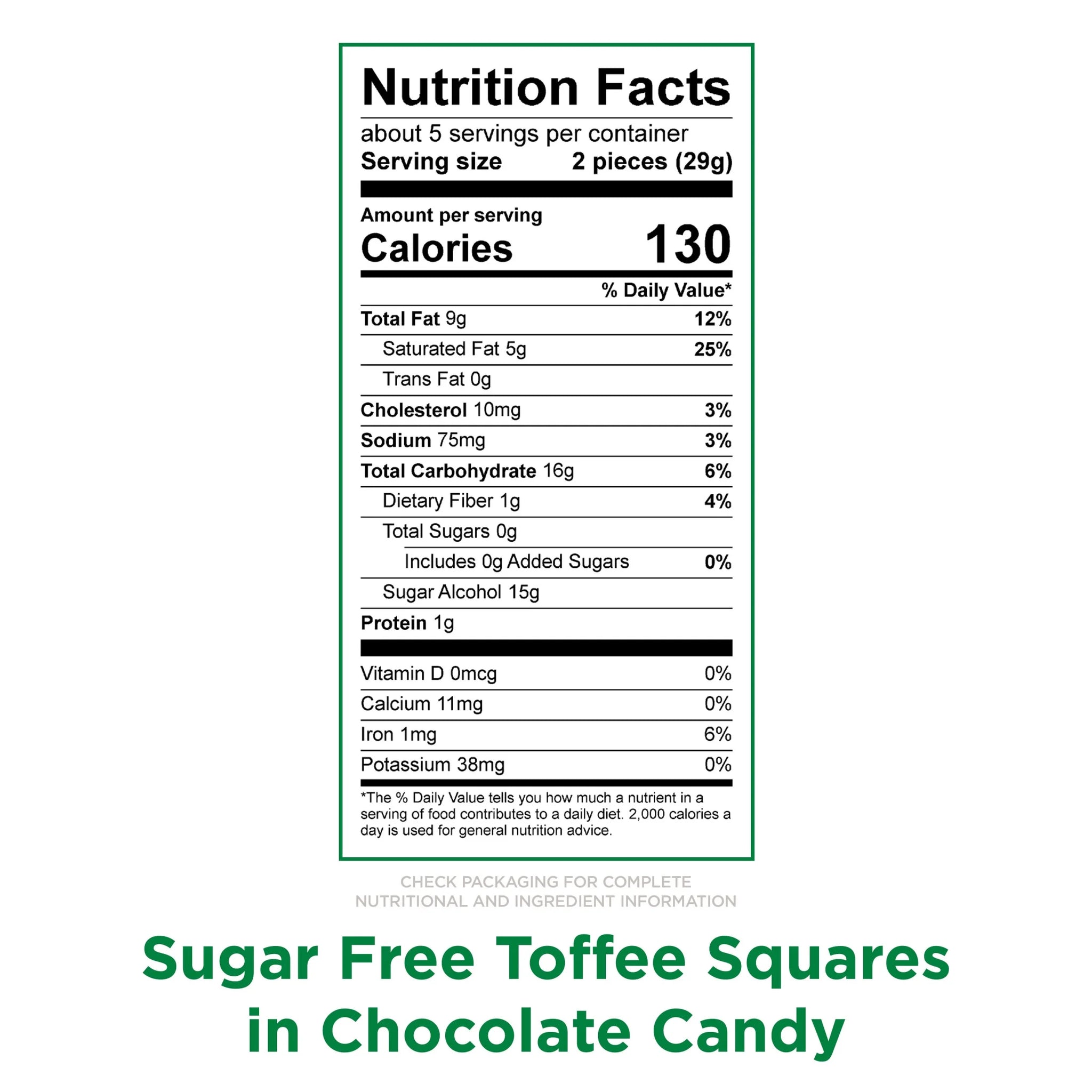 - These decadent crunchy toffee squares in chocolate candy are made with zero sugar for a guilt-free indulgence, when you just need to take a moment out of your busy day.