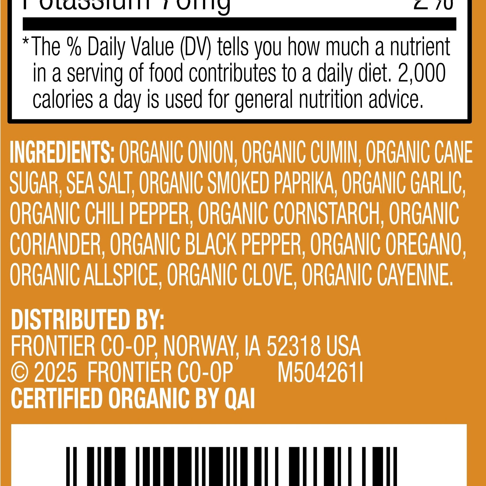 Organic onion, organic cumin, organic cane sugar, sea salt, organic smoked paprika, organic garlic, organic chili pepper, organic cornstarch, organic coriander, organic black pepper, organic oregano, organic allspice, organic clove, organic cayenne/div>