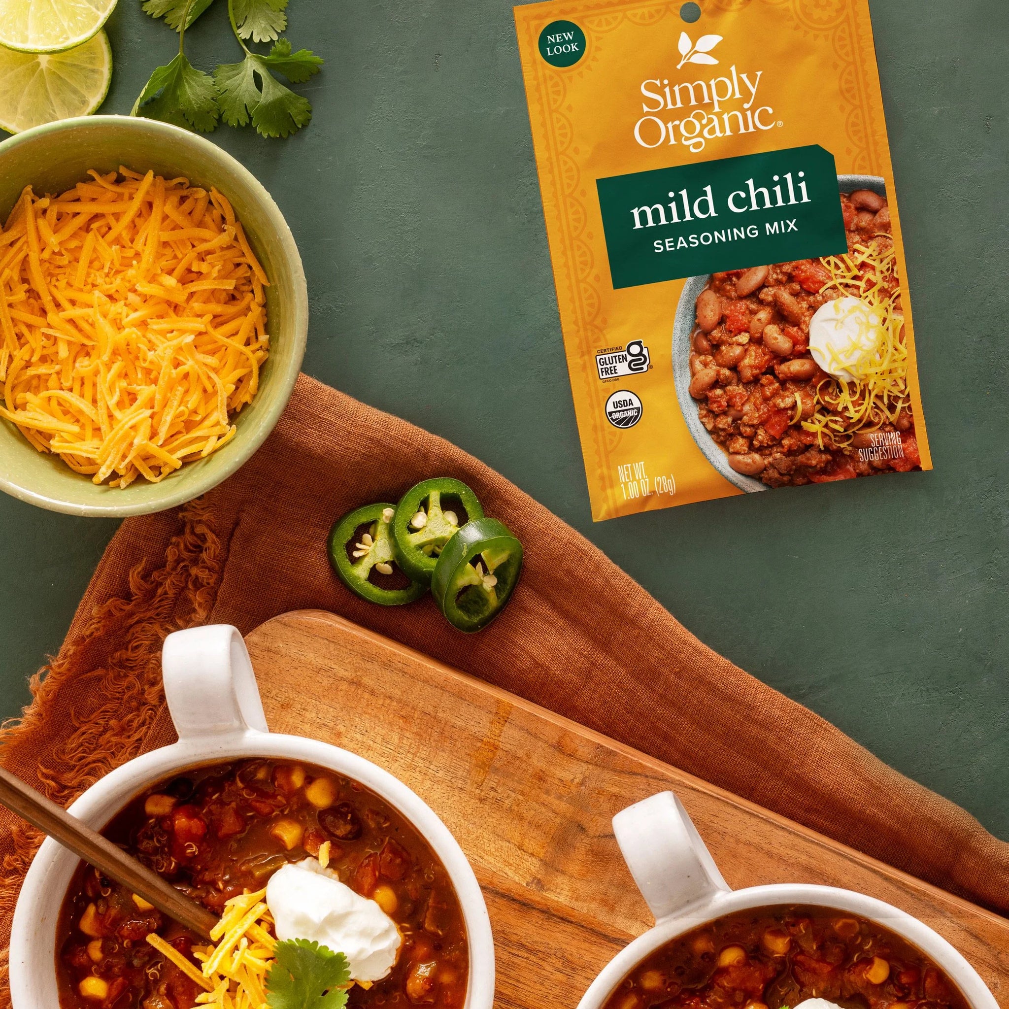 Simply Organic Mild Chili Seasoning Mix brings warm, hearty flavor without too much heat. Made with organic cumin, paprika, cloves, and allspice, this blend creates rich chili that’s family-friendly and comforting. Just add to your favorite meat, beans, or veggies for a cozy pot of chili that’s quick to prepare and full of classic flavor everyone will enjoy.