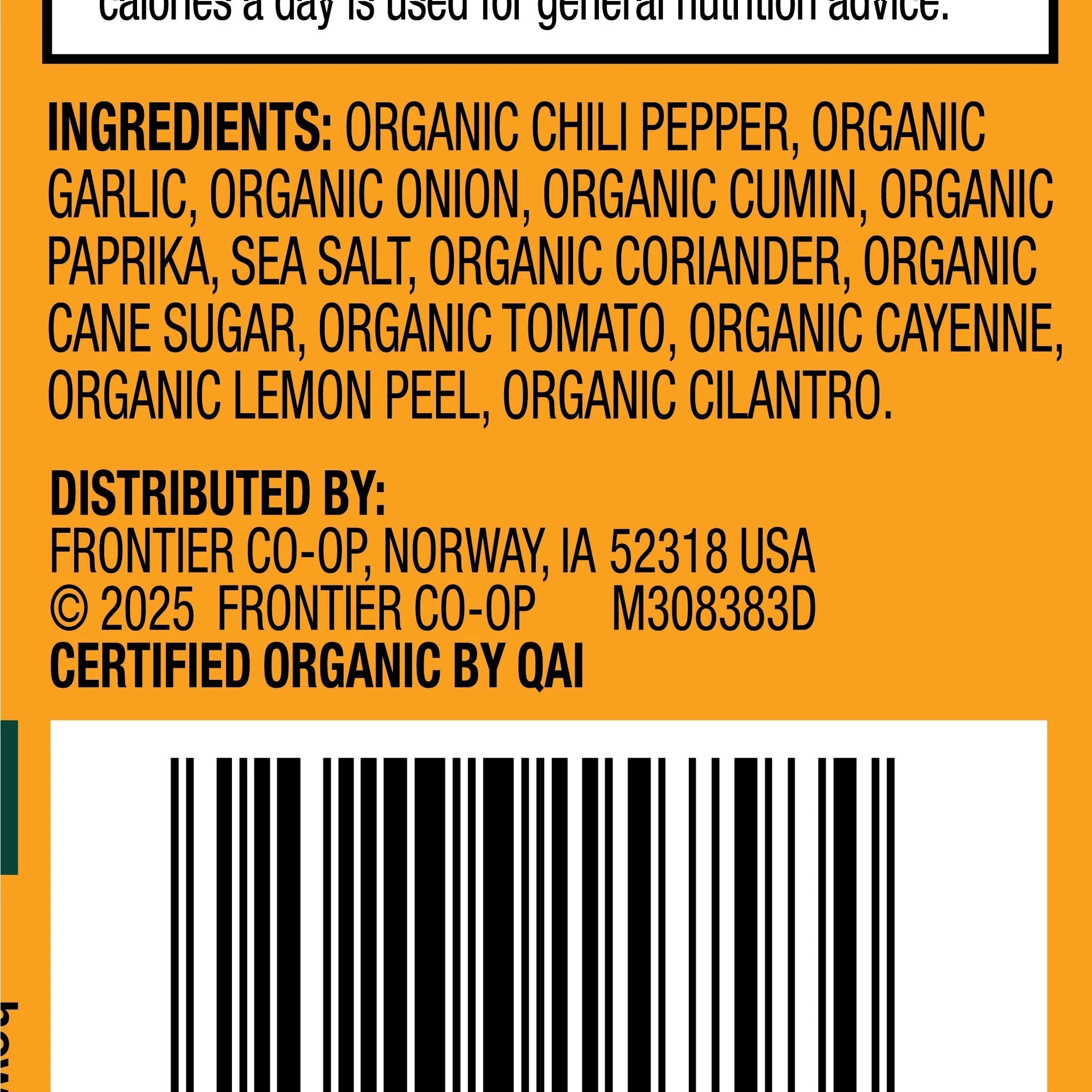 Organic Chili Pepper, Organic Paprika, Organic Onion, Sea Salt, Organic Garlic, Organic Lemon Peel Organic Cumin, Organic Potato Starch, Organic Coriander, Organic Tomato Powder (Organic Tomato Concentrate, Organic Guam Gum), Organic Cilantro, Organic Cane Sugar, Organic Rice Concentrate, Organic Cayenne./div>