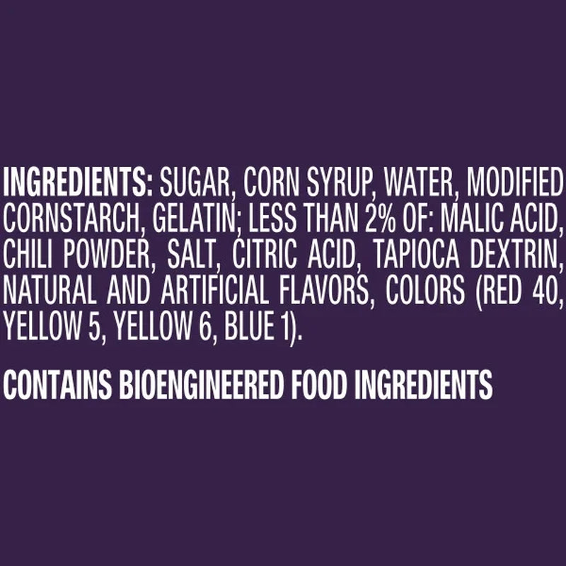 The rainbow is turning up the heat! Introducing SKITTLES GUMMIES Fuego—our spicy new twist on your favorite gummy candy! From the makers of Lucas Candy, these bite-sized chili-lime coated SKITTLES gummies offer the perfect fusion of sweet and spicy. Each candy bag contains the explosive flavor experience of the 5 fruity flavors of strawberry, grape, lime, lemon, and orange, coated in a tangy chili-lime flavor. Whether you're spicing up your lunch break, adding some zest to your workday, kicking back with friends for movie night, or stealing the show at any party with this crowd-pleasing candy sensation, SKITTLES Fuego gummy candy is your fiery go-to! Fire up your taste buds and embrace the spicy side of the rainbow with SKITTLES GUMMIES Fuego Gummy Candy today!