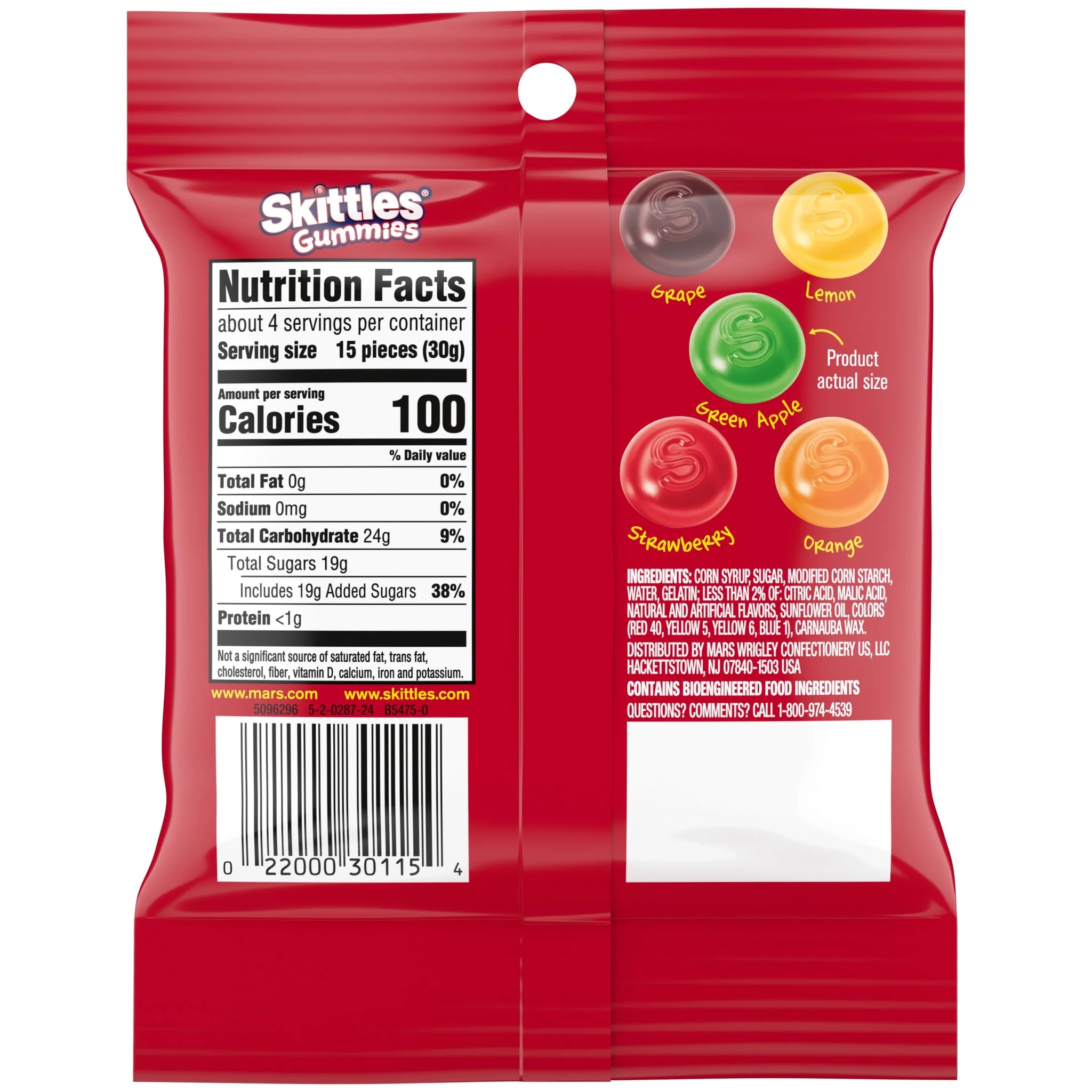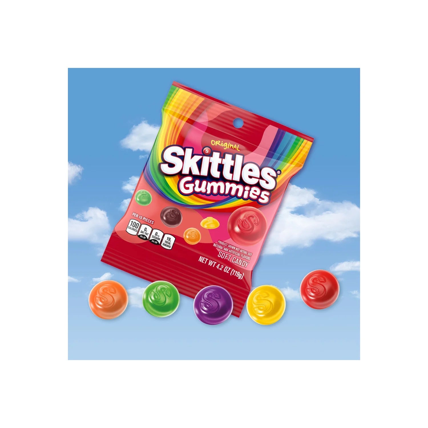 Welcome to the soft and gummy side of the rainbow with SKITTLES Gummies! The beloved chewy candy has taken a gummy turn with the same epic flavors of green apple, lemon, grape, orange, and strawberry. They're the perfect gummy treat for any occasion. Turn lunch time into a party time thanks to this candy bag of fruity goodness! Let the burst of SKITTLES Gummies fruit flavors be your gaming treat of choice during your next dungeon run with friends. Whether you're gearing up for a road trip or taking a stab at a candy salad, these chewy candies are sure to satisfy your sweet tooth. Grab your SKITTLES Gummies Original Gummy Candy today and treat yourself to a gummy explosion of fruity flavor! Order now!