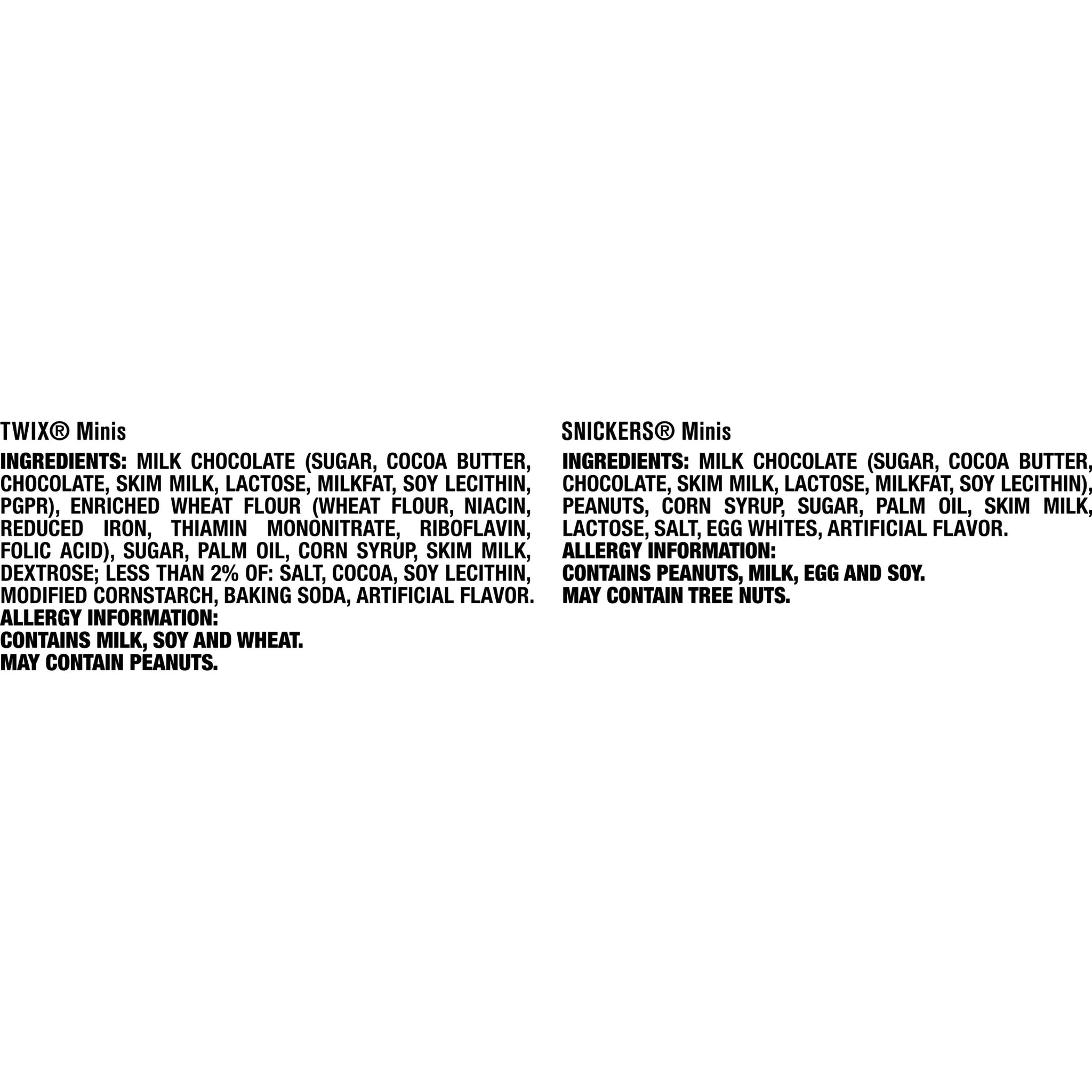 - Contains one (1) 23.19-ounce bulk party size variety candy bag of SNICKERS & TWIX Mini Milk Chocolate Bars