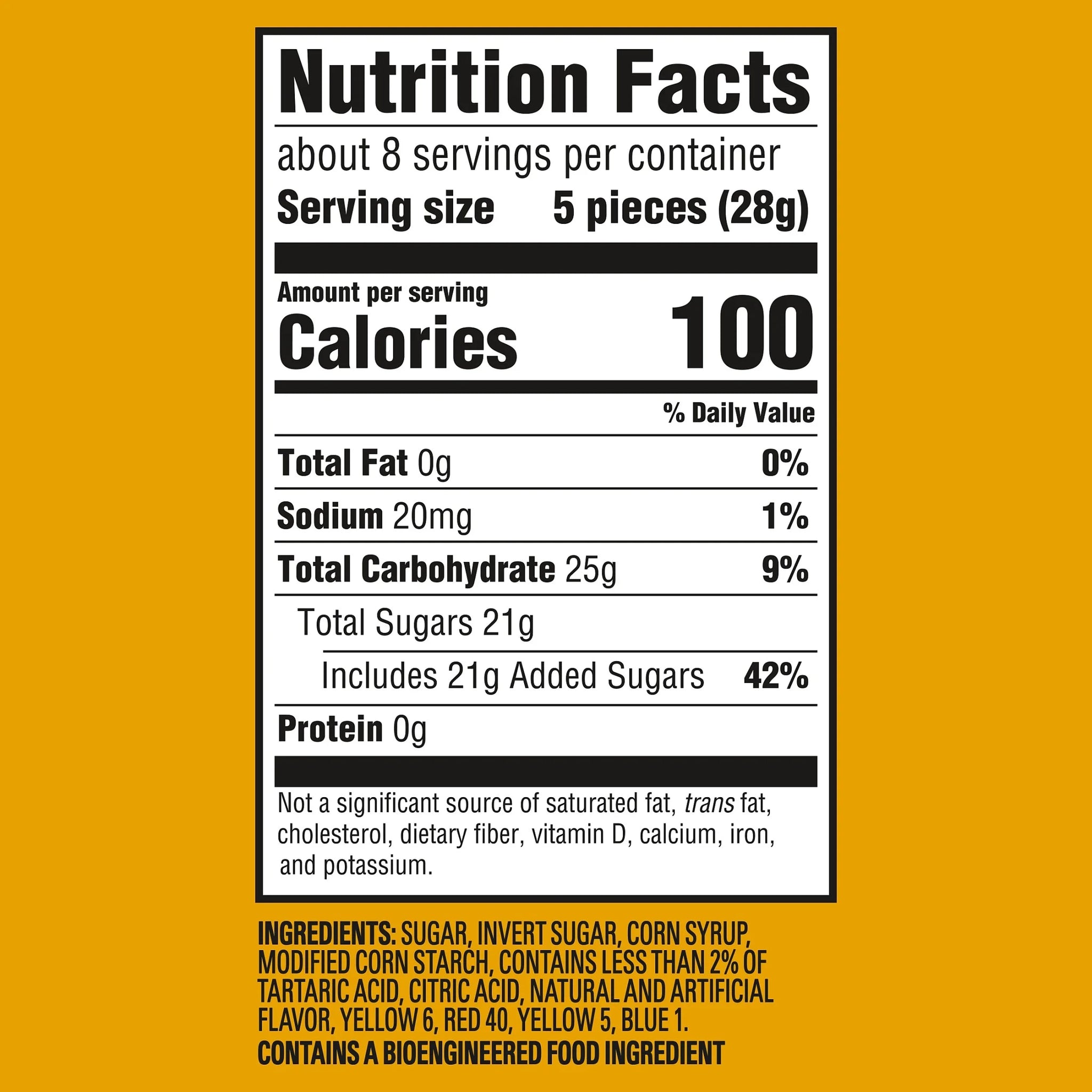 Sugar, Invert Sugar, Corn Syrup, Modified Corn Starch, Contains Less Than 2% Of Tartaric Acid, Citric Acid, Natural And Artificial Flavor, Yellow 6, Red 40, Yellow 5, Blue 1./div>