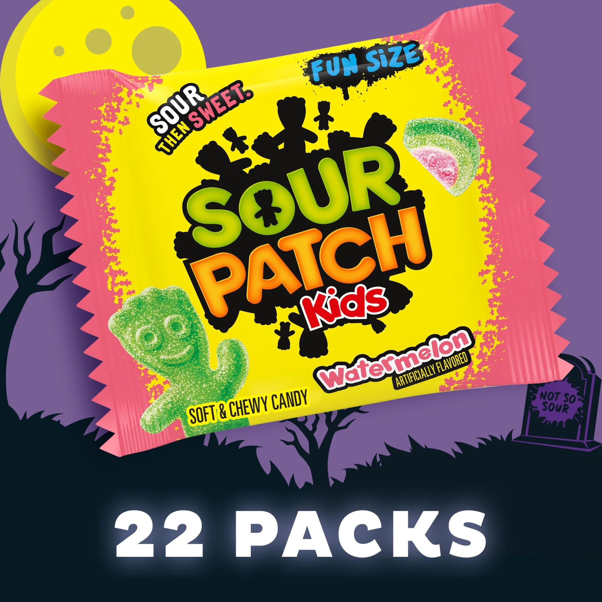 • One pack, 22 treat-size bags, of SOUR PATCH KIDS Watermelon Soft & Chewy Halloween Candy