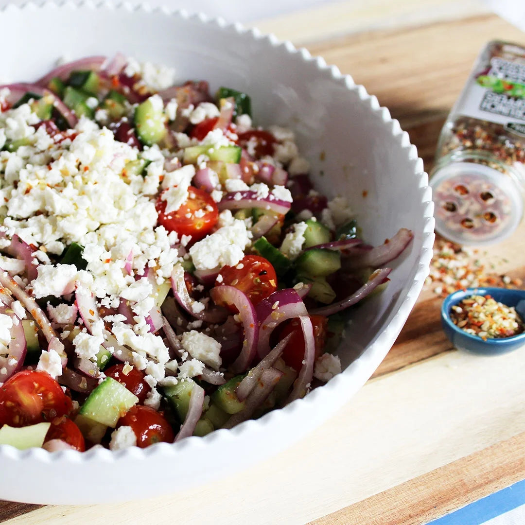 - This crunch topper is a perfect companion for our favorite Veggie and Feta Salad. 5. All our Crunch Toppers are Salt Free, Non-GMO, Gluten-free and Kosher Ingredients: Sesame seeds, golden flax seeds, carrots, hemp seeds, bell pepper, tomato, onion, garlic, chives