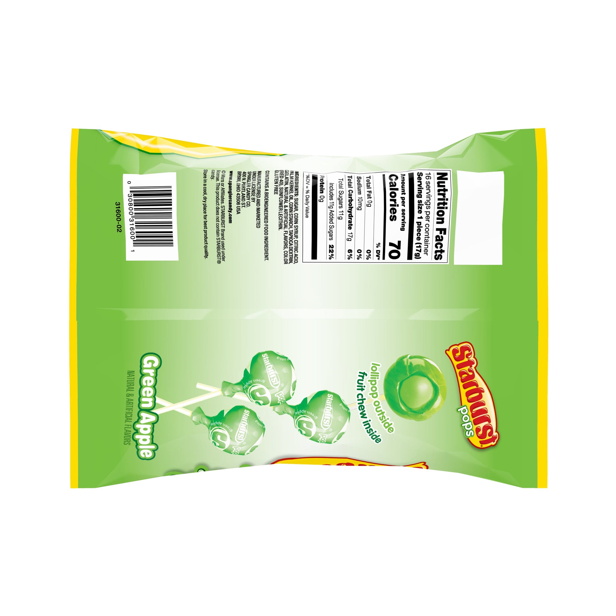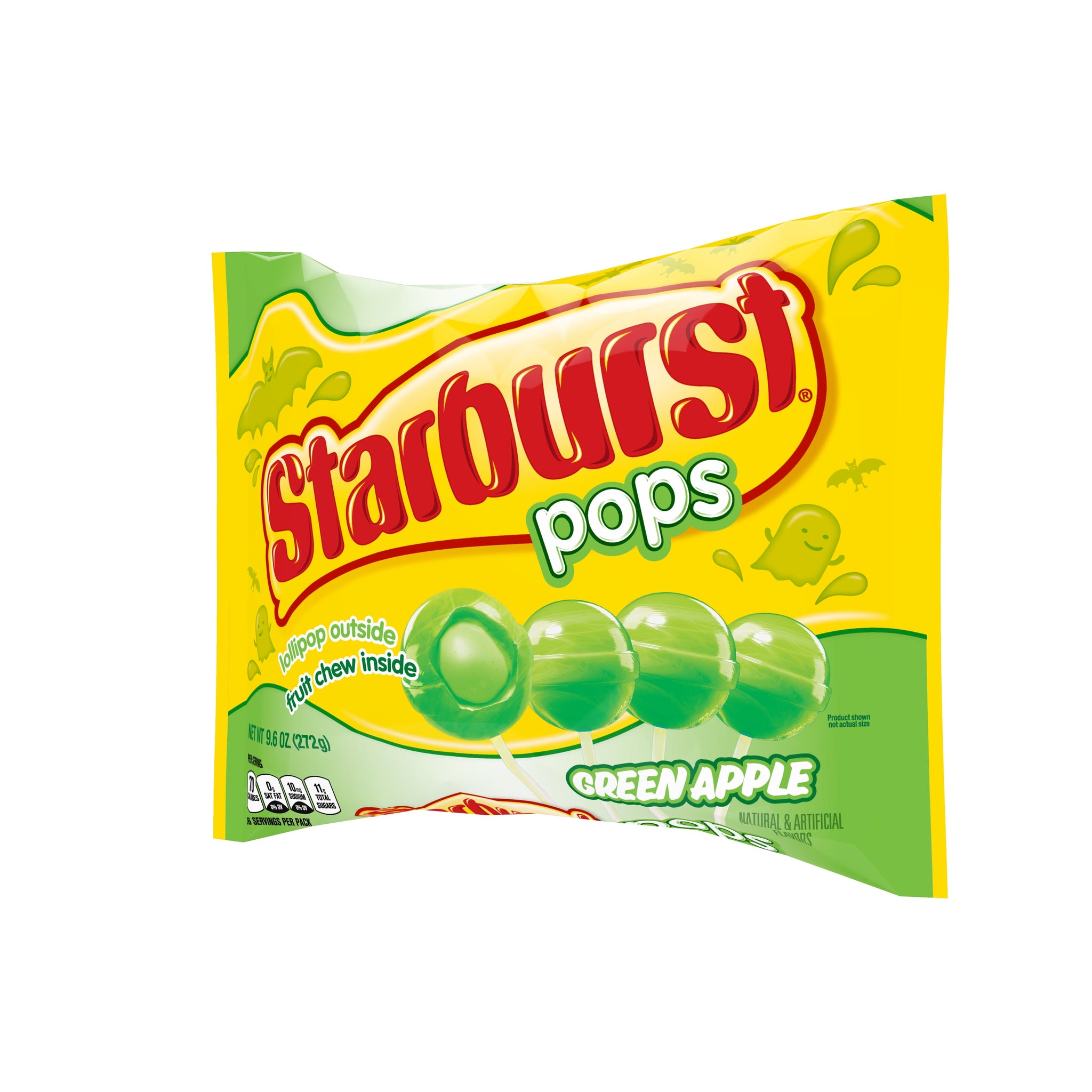 Experience the bold flavor of Green Apple STARBURST packed in a delicious lollipop. Each pop is individually wrapped and has a hard candy shell with a fruit chew center. These suckers are great for trick-or-treaters. They’re also perfect for Halloween parties, office parties and more. Treat yourself to a tasty combination of the hard candy outside and the unexplainably juicy fruit chew center. STARBURST Pops are made and marketed under license by Spangler Candy Company. STARBURST is a registered trademark of MARS or Affiliates, STARBURST used under license.