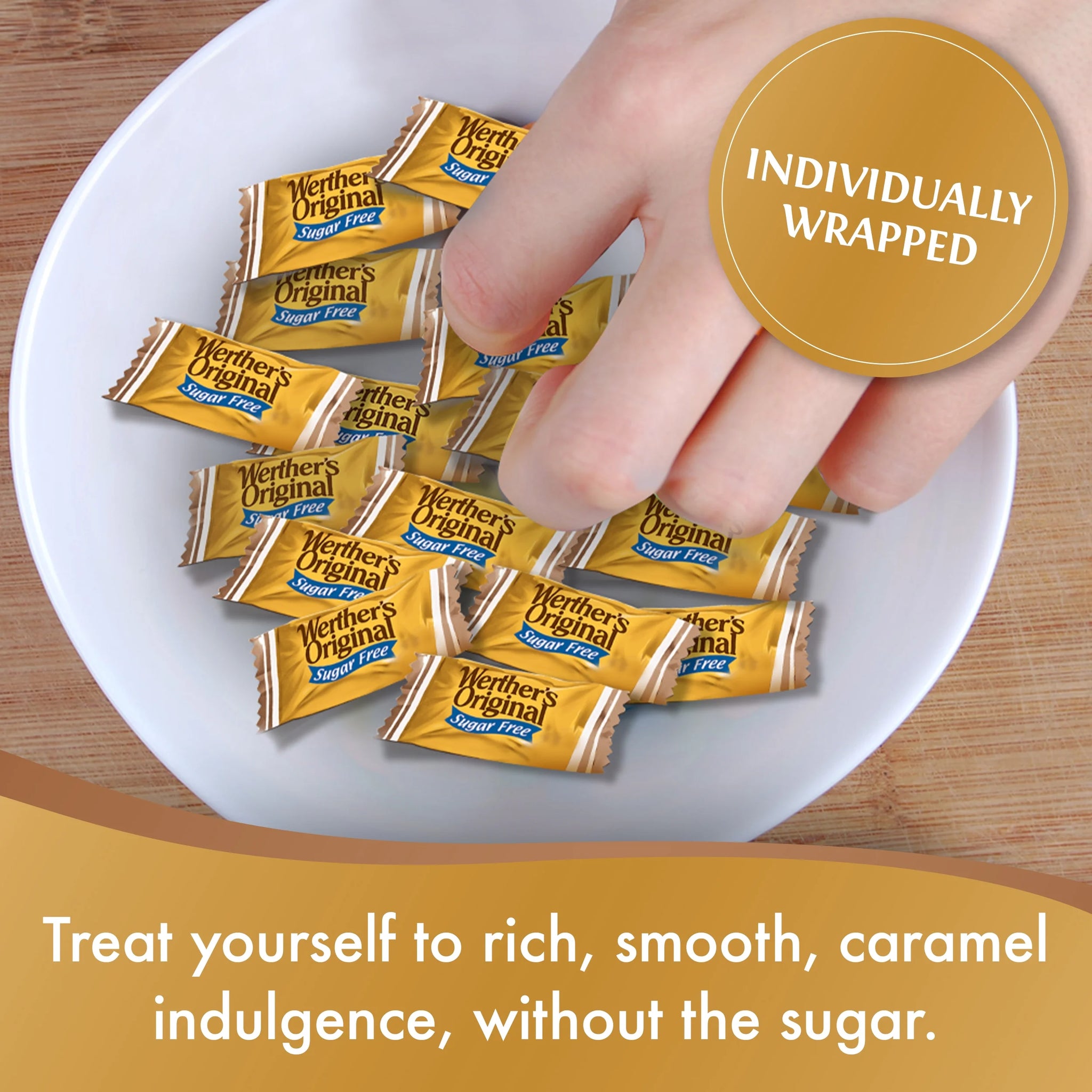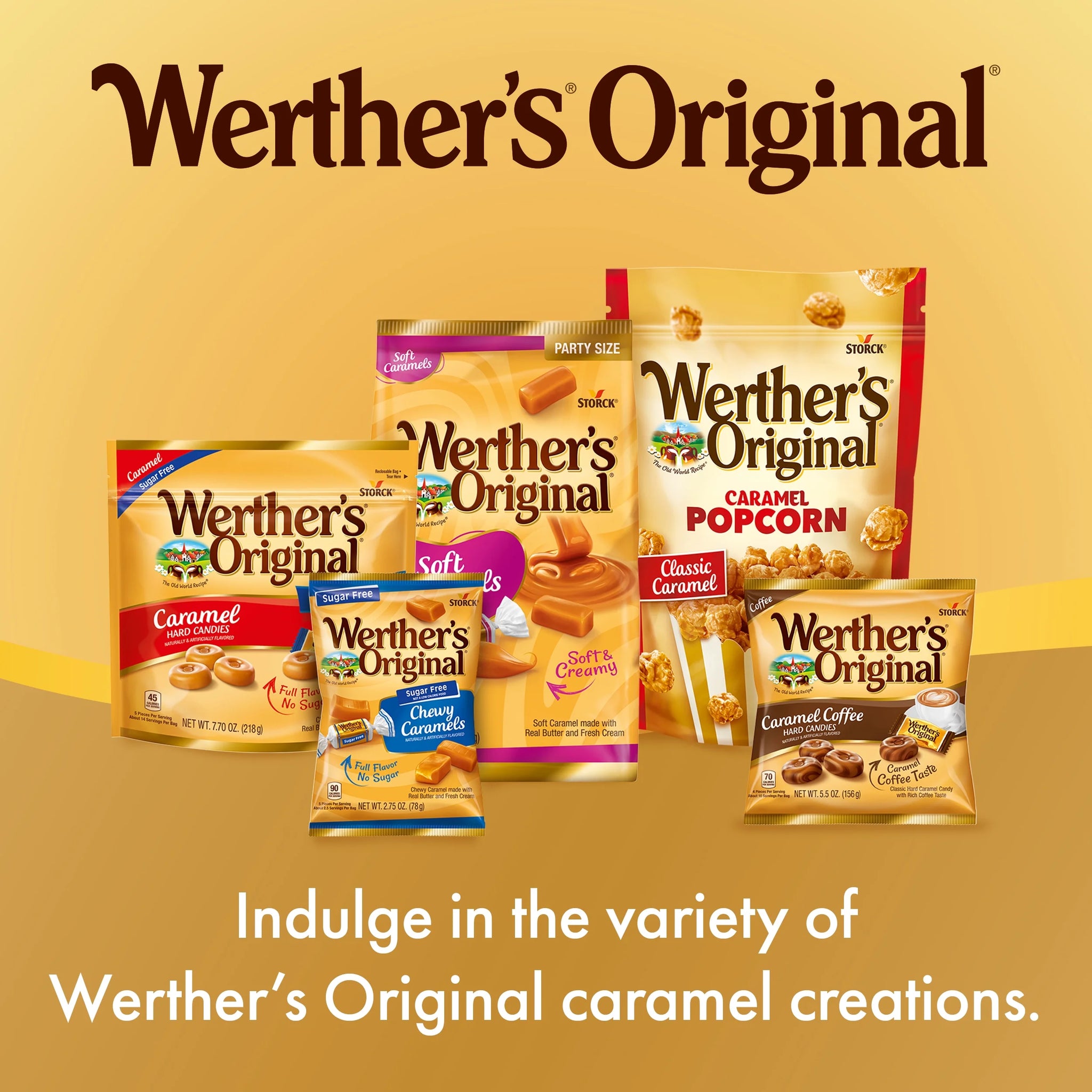 Enjoy a sweet treat with Werther's Original Caramel Candy. It melts smoothly in your mouth, leaving a buttery sweet taste that lingers. Werther's Original candy is made with creamy caramel and swirled with rich cocoa. The traditional old world recipe includes real butter and cream for a scrumptious flavor that is hard to resist. This candy is sugar-free and is individually wrapped for freshness. Werther's Originals are in a range of flavors and in soft and chewy varieties.