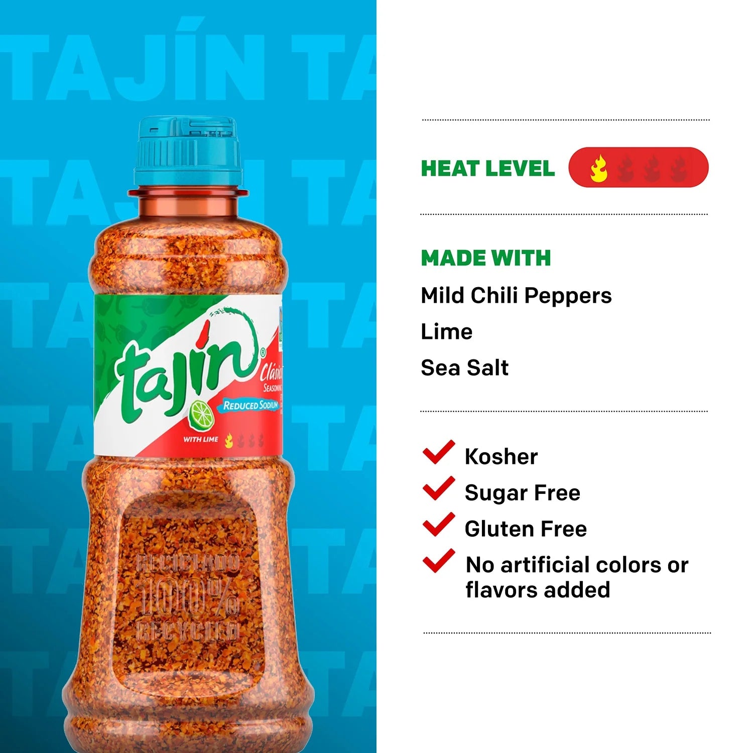 Enjoy the versatility of Tajín® Clásico Reduced Sodium Seasoning in your favorite food, margarita recipes, and other cocktail recipes. Made with a unique blend of mild chili peppers, lime, and sea salt, our Tajín® powder seasoning enhances the flavor of food and turns it into something extraordinary. Use for adding a flavorful rim to your favorite cocktails, including any spicy margarita recipe, pineapple jalapeno margarita recipe, or cucumber jalapeno margarita recipe. It delivers the right amount of "zing", an extra pop of flavor to almost any dish, with 37% less sodium than our original Tajín® Clásico Seasoning. There is no need to worry about the heat because our blend ensures that the sensation will be more flavorful than hot. Sprinkle Tajín® Seasoning on fruits, veggies, salads, frozen bars, casseroles, and even drinks. Or for an easy, flavorful, and nutritious meal, try Dolores® Yellowfin Tuna Chunk Light Tuna in Water with Tajín® Reduced Sodium Seasoning. ¡More Bueno, Less Sodium!