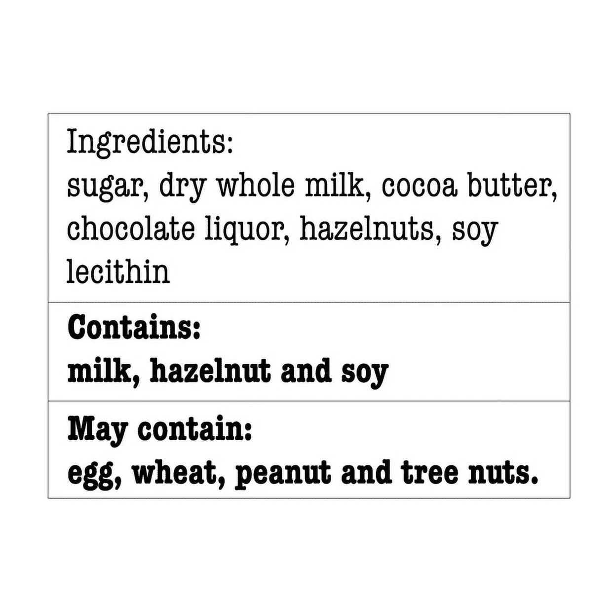 sugar, dry whole milk, cocoa butter, chocolate liquor, hazelnuts, soy lecithin/div>
