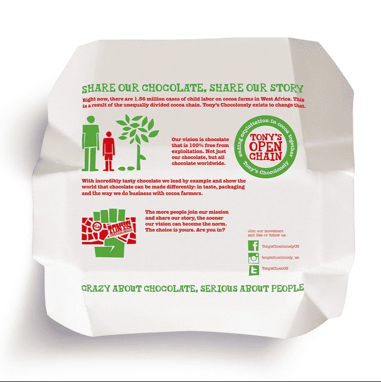 • Contains (1) 6.35 ounce Tony's Chocolonely Milk Chocolate Bar with Hazelnut