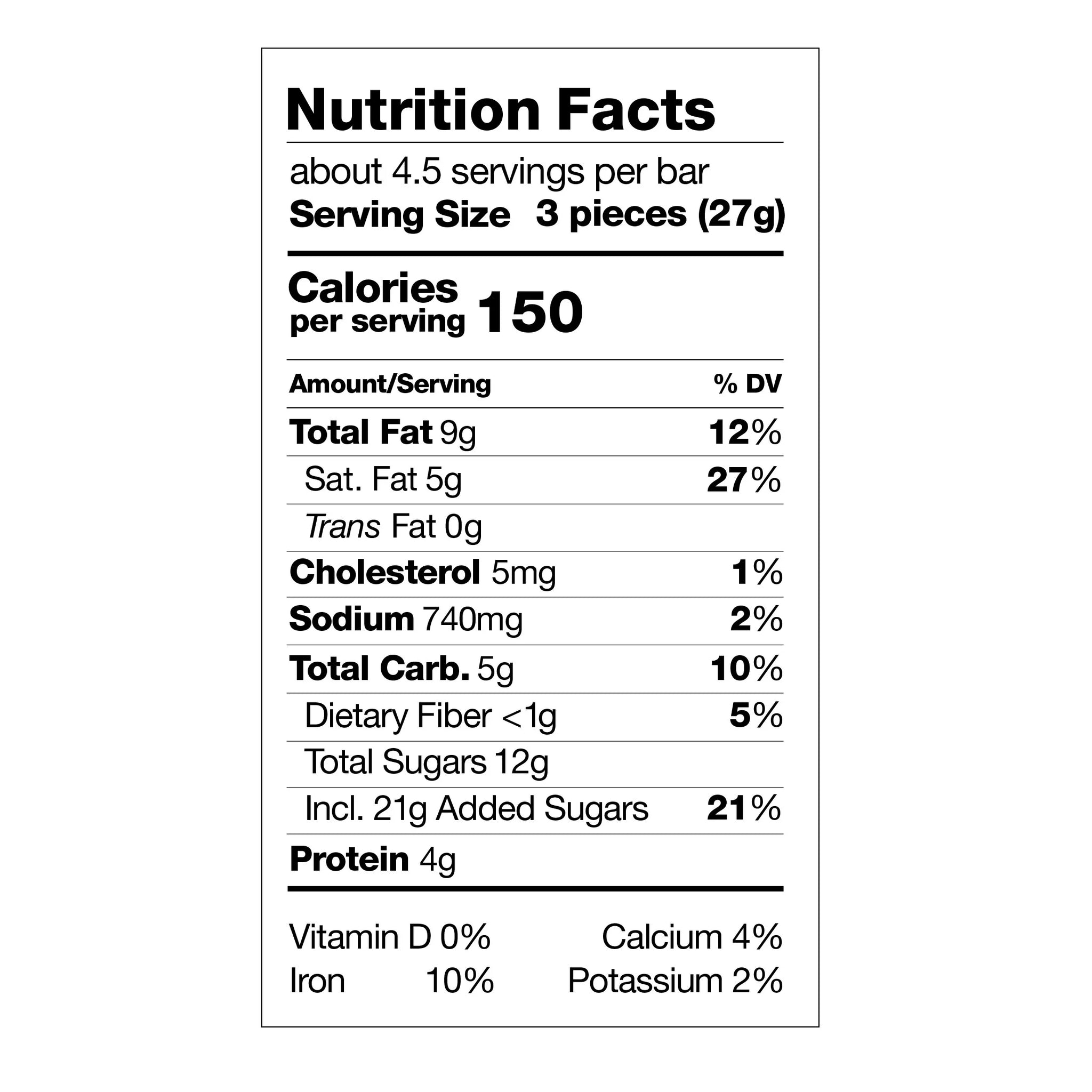 MILK CHOCOLATE: Sugar, Whole Milk Powder, Cocoa Butter, Chocolate Liquor, Soy Lecithin MILK CHOCOLATE CARAMEL SEA SALT: Sugar, Whole Milk Powder, Cocoa Butter, Chocolate Liquor, caramel (sugar, glucose syrup (wheat), butter (milk), cream (milk)), Sea Salt, Soy Lecithin DARK MILK CHOCOLATE PRETZEL TOFFEE: Sugar, Chocolate Liquor, Whole Milk Powder, Cocoa Butter, pretzel pieces (wheat flour, sunflower oil, salt, malted wheat flour, yeast, acidity regulator (sodium hydroxide)), Caramel (Sugar, Glucose Syrup (Wheat)), Sea Salt, Soy Lecithin DARK CHOCOLATE ALMOND SEA SALT: Chocolate Liquor, Sugar, almonds, Cocoa Butter, Sea Salt, Soy Lecithin MILK CHOCOLATE NOUGAT: Sugar, Whole Milk Powder, Cocoa Butter, Chocolate Liquor, honey-almond-nougat (cane sugar, wheat syrup, almonds, honey, cocoa butter, potato starch, egg whites), Soy Lecithin DARK CHOCOLATE: Chocolate Liquor, Sugar, Cocoa Butter, cocoa powder, Soy Lecithin/div>