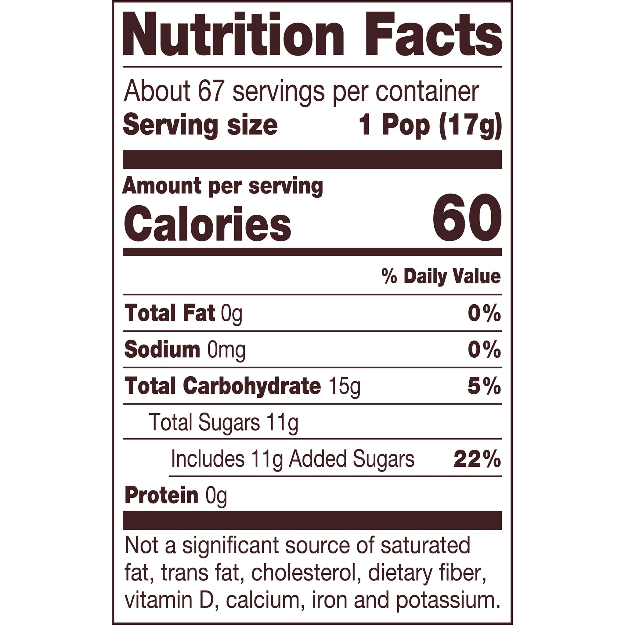 Tootsie Pops, Assorted, 65 Count. Peanut Free and Gluten Free. Contains Milk and Soy. Tootsie Pops are the world’s number #1-selling candy-filled lollipop. The chewy, Tootsie Roll center; covered with a delicious, hard candy coating; is a wonderfully delicious treat. A Tootsie original that was the first lollipop to provide a hidden candy “prize.” Tootsie Pops are known and loved by adults and kids around the world; and the mystery of how many licks it takes to get to the Tootsie Roll center of a Tootsie pop still remains unsolved. Assorted flavors include cherry, orange, raspberry, chocolate and grape. Tootsie Pops are the perfect 60 calorie Treat for candy lovers of all ages. Together, the Tootsie brands resonate strongly among every age group, culture, and demographic; for every occasion and event; and during every economic climate, qualifying them as truly enduring, iconic American confections. Peanut Free and Gluten Free. Contains Milk and Soy.