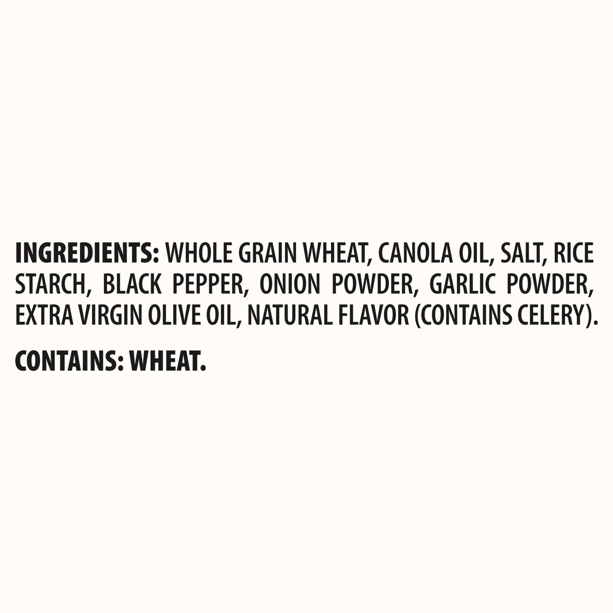 Whole Grain Wheat, Canola Oil, Salt, Rice Starch, Black Pepper, Onion Powder, Garlic Powder, Extra Virgin Olive Oil, Natural Flavor (Contains Celery). Contains: Wheat./div>