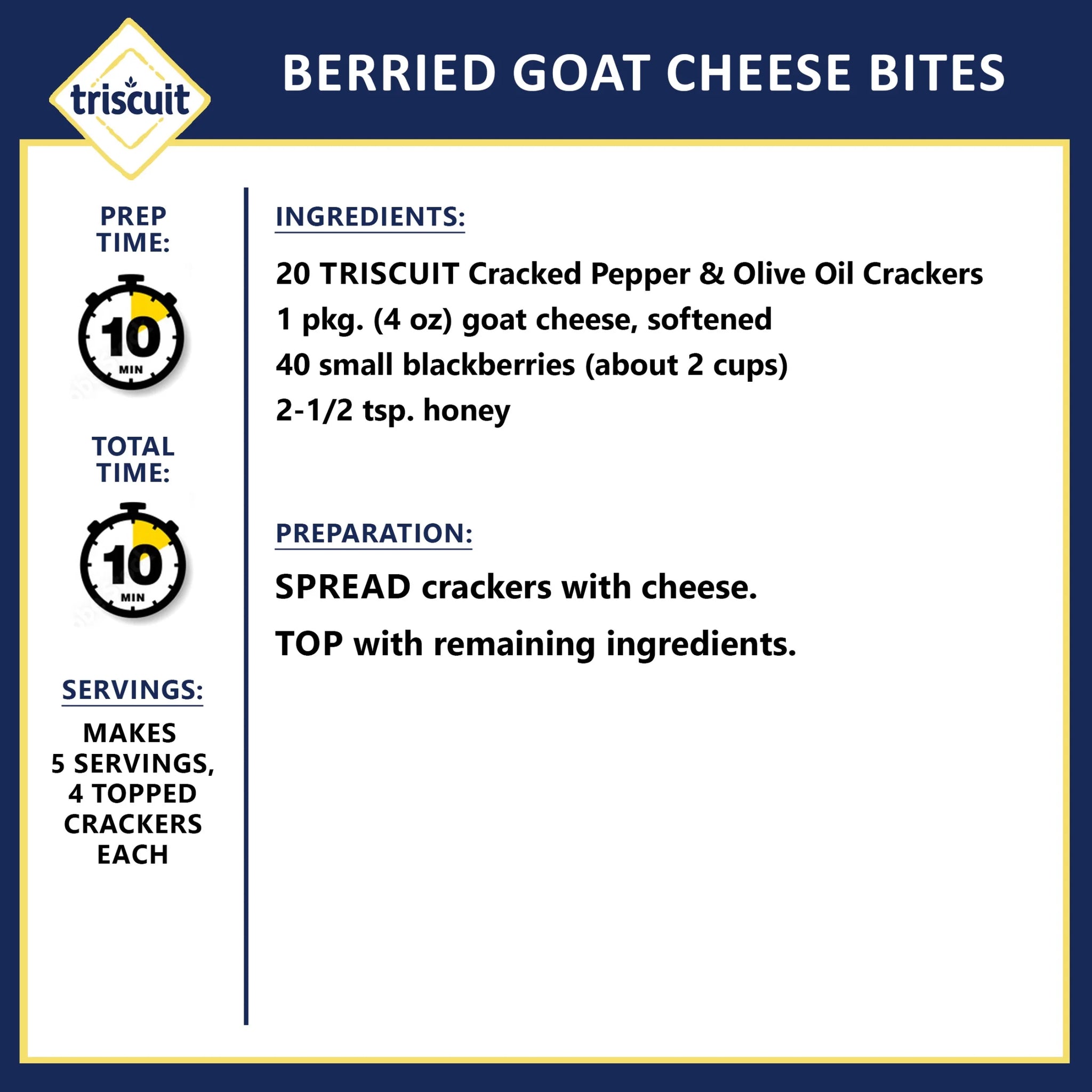 • One 12.5 oz family size box of Triscuit Cracked Pepper & Olive Oil Whole Grain Wheat Crackers (packaging may vary)