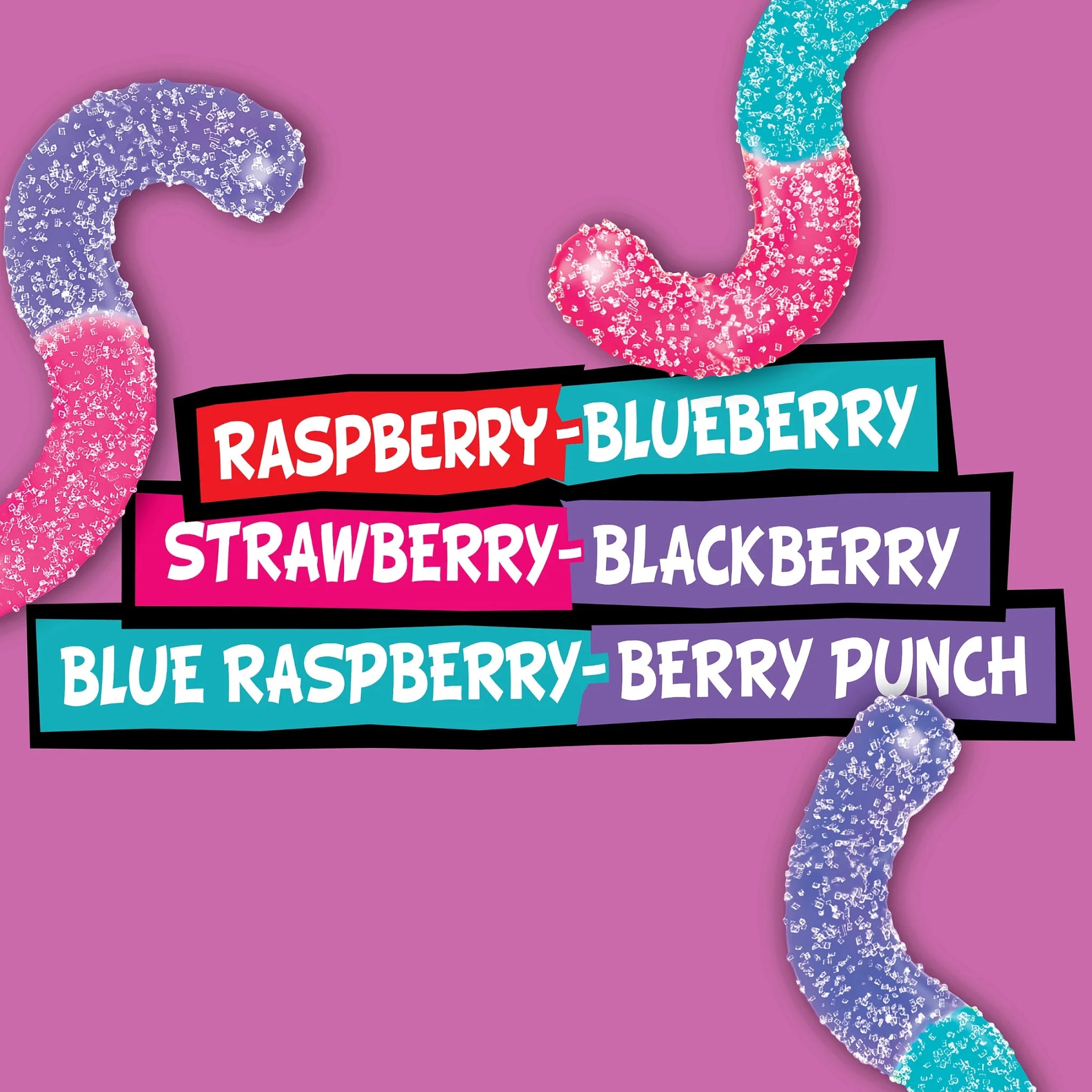 Trolli Sour Brite Very Berry Crawlers are chewy gummy worms covered in a tongue-twisting sugary goodness, striking the perfect balance of sweet and sour in every bite. The flavors include raspberry-blueberry, strawberry-blackberry, and blue raspberry-berry punch. Whether you're looking for a snack to satisfy your sweet tooth, or you're in the mood for something sour and tangy, Trolli Sour Brite Crawlers have got you covered. With their bold flavors, soft texture, and colorful design, they are sure to be a hit with anyone who loves gummy candies. So why wait? Treat yourself today and enjoy the mouthwatering flavors in every bite: Trolli Sour Brite Crawlers. Trolli Sour Brite Crawlers are part of a wider family of candies. Trolli offers a variety of other tasty treats including Sour Duo Crawlers, Sour Bursting Crawlers, Peachie O's, and others. Trolli has been bending the rules to give you the sweet, sour, and tangy taste that you crave.