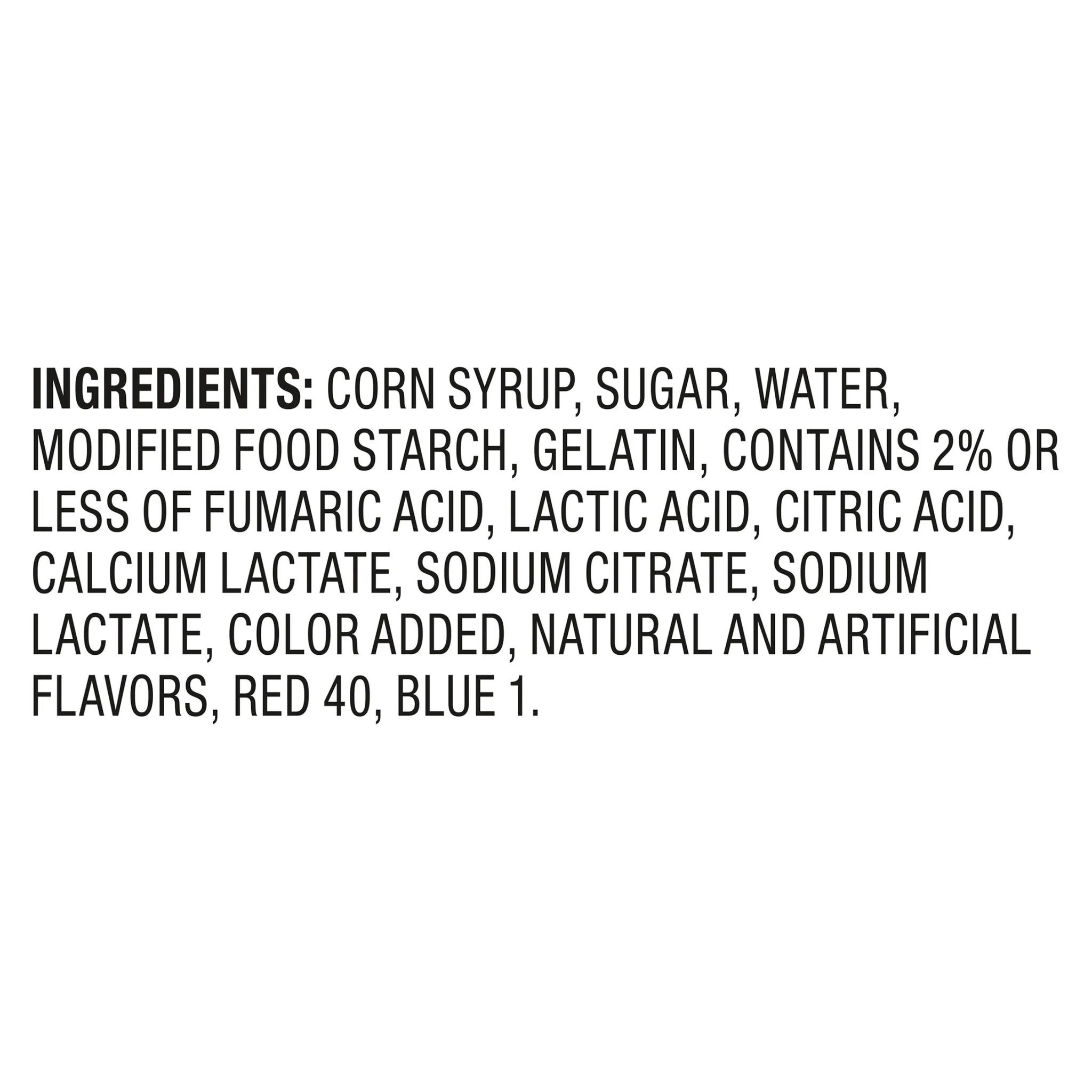 Corn Syrup, Sugar, Gelatin, Modified Food Starch (Corn), Fumaric Acid, Lactic Acid, Citric Acid, Sodium Citrate, Calcium Lactate, Natural and Artificial Flavors, Sodium Lactate, Titanium Dioxide [Color], Red 40, Blue 1./div>