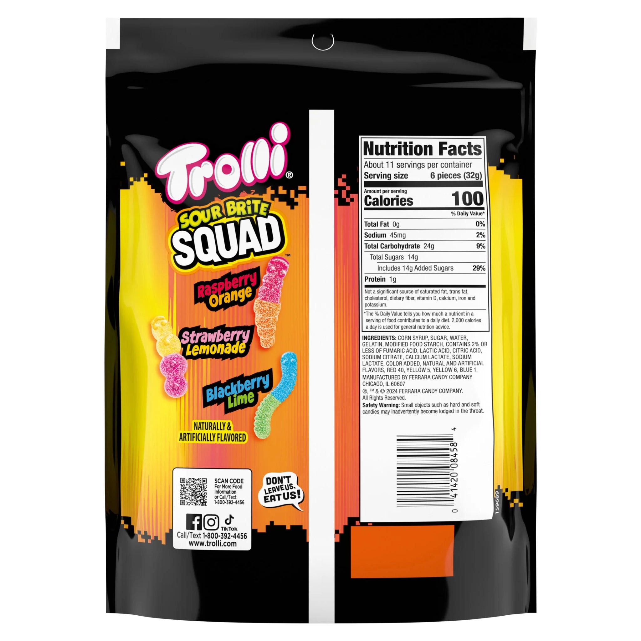 • LOTS OF GUMMY OPTIONS: Trolli Sour Brite Squad is part of the Trolli range of products. Try our tasty candy options, including Sour Brite Octopus, Sour Brite Crawlers Fruit Punch and Peachie O's.