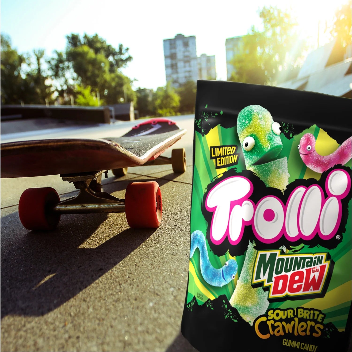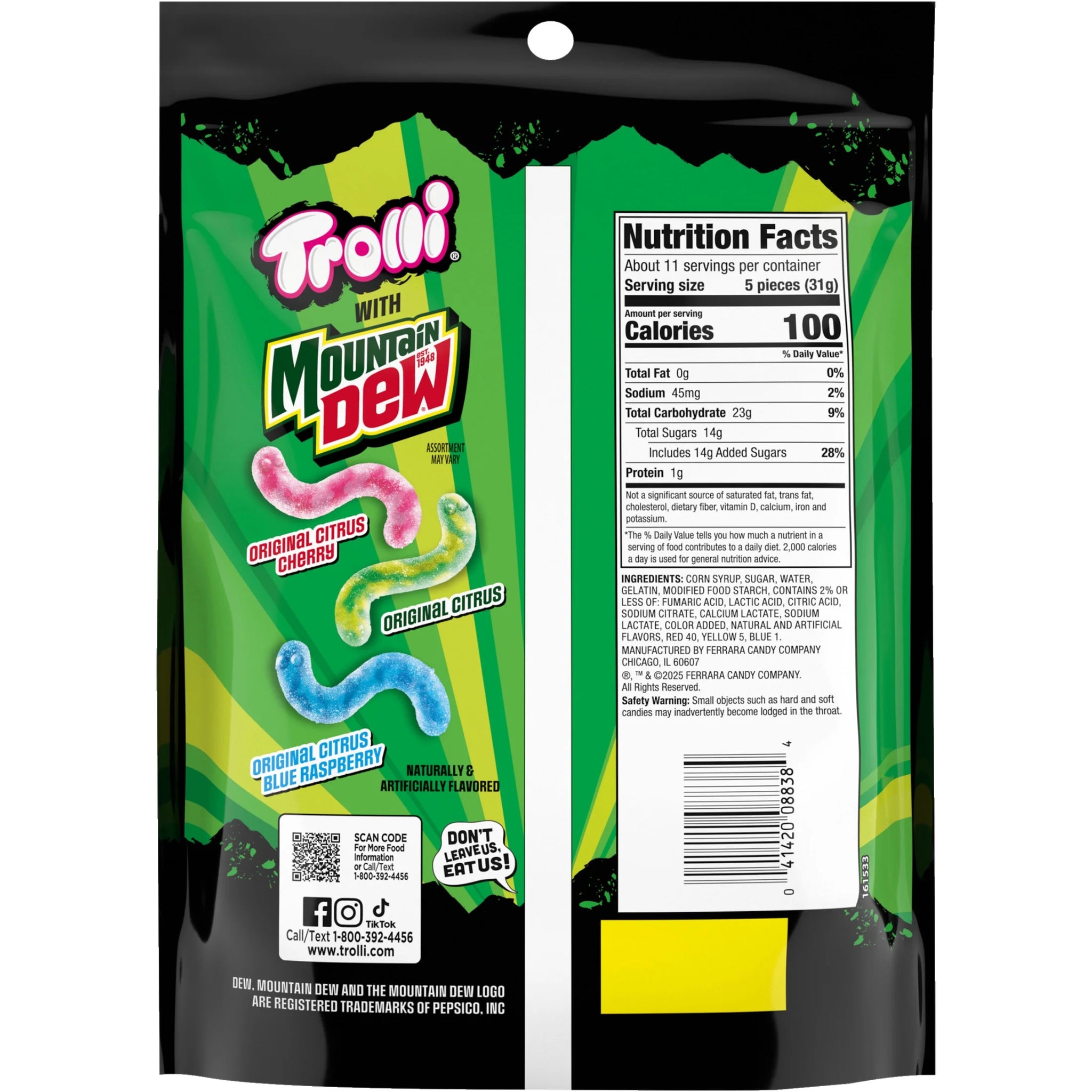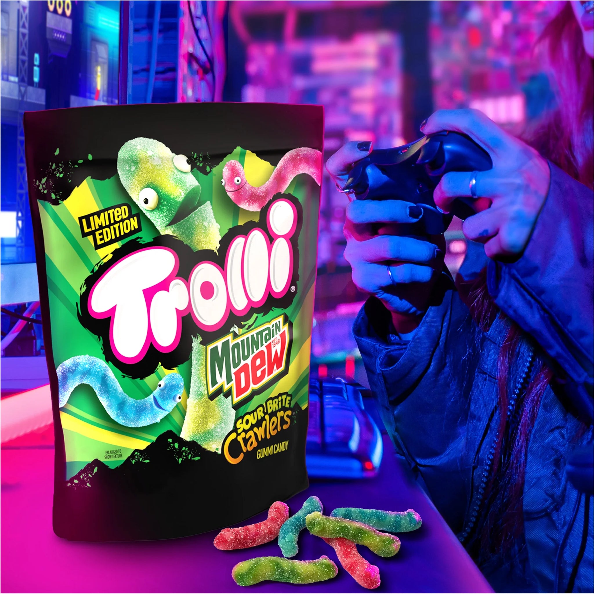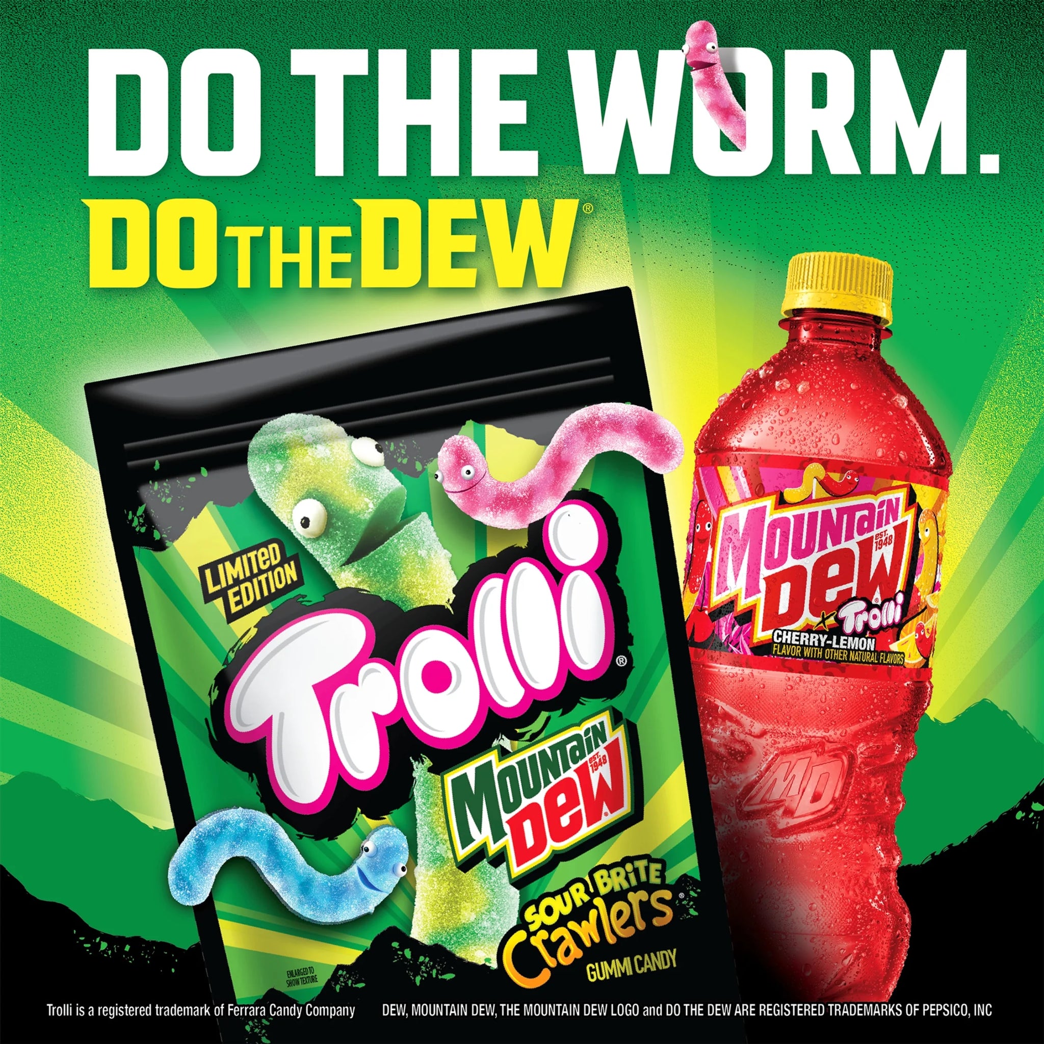 • CITRUSY AND SOUR: Trolli x Mountain Dew Sour Brite Crawlers 12.3 oz bag include Original Citrus, Original Citrus x Cherry, Original Citrus x Blue Raspberry. Get ready to DO THE WORM. DO THE DEW.