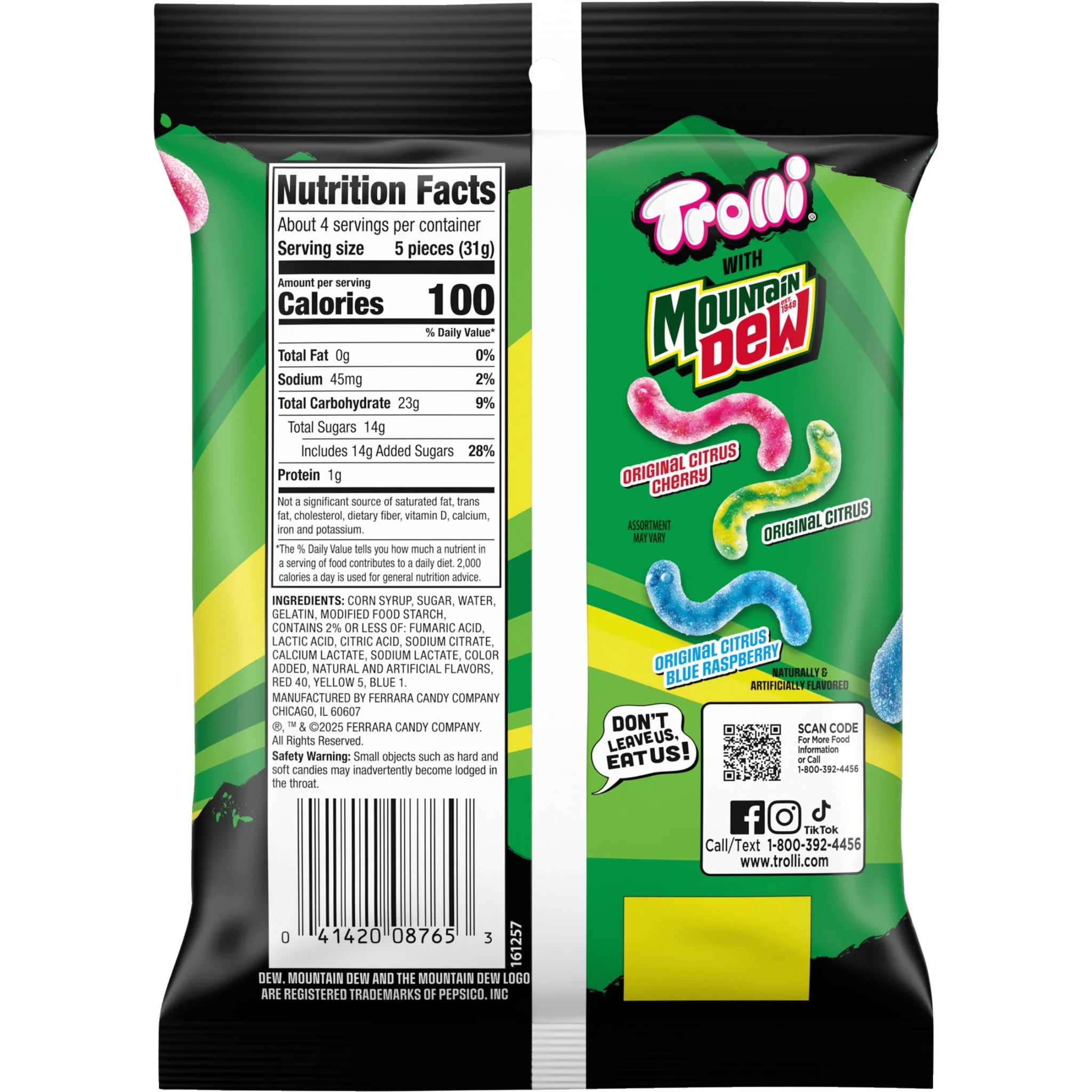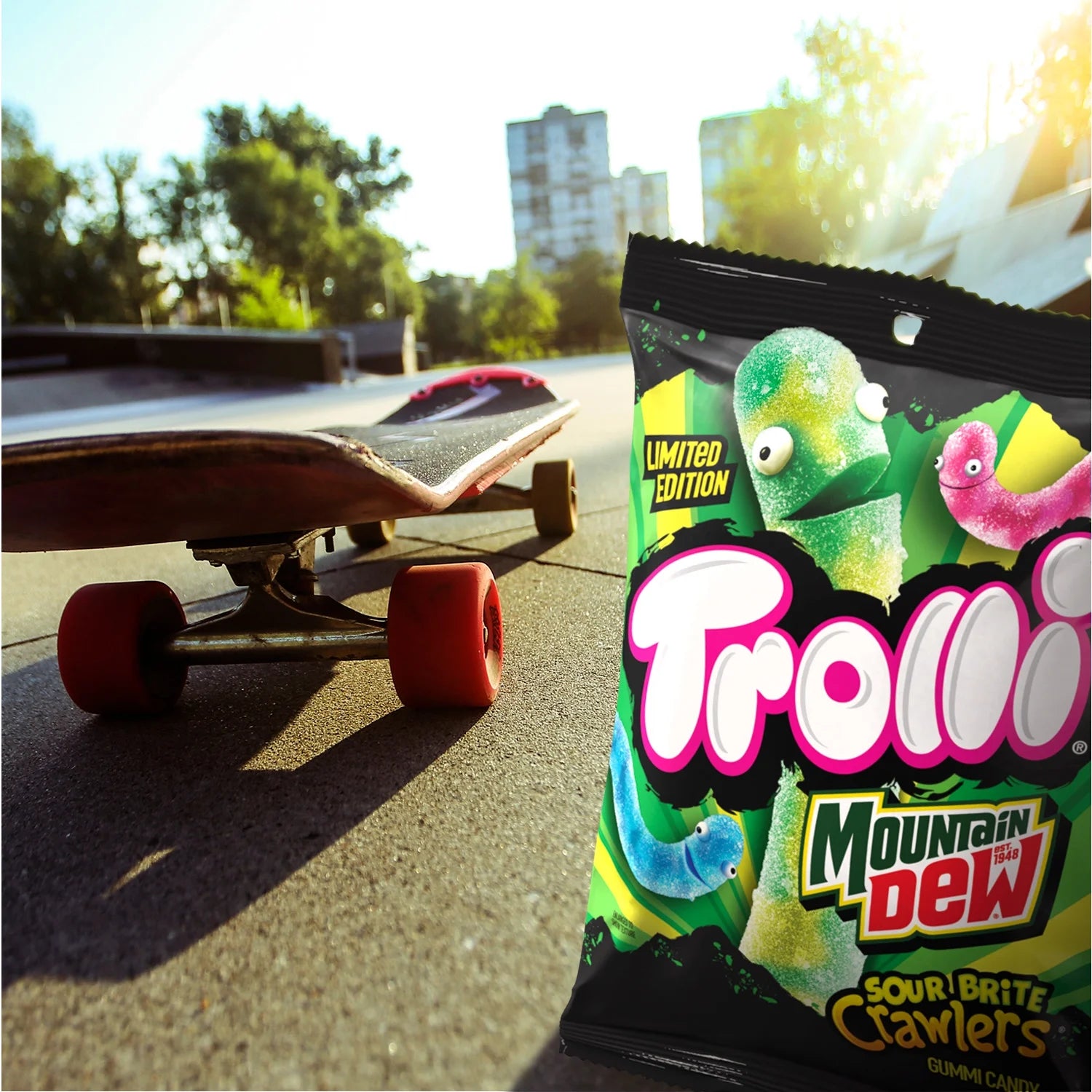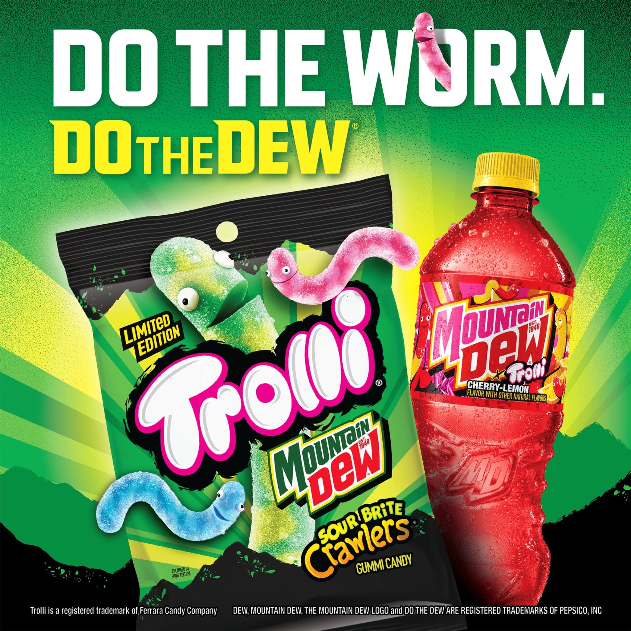• CITRUSY AND SOUR: Trolli x Mountain Dew Sour Brite Crawlers 4.25 oz bag include Original Citrus, Original Citrus x Cherry, Original Citrus x Blue Raspberry. Get ready to DO THE WORM. DO THE DEW.