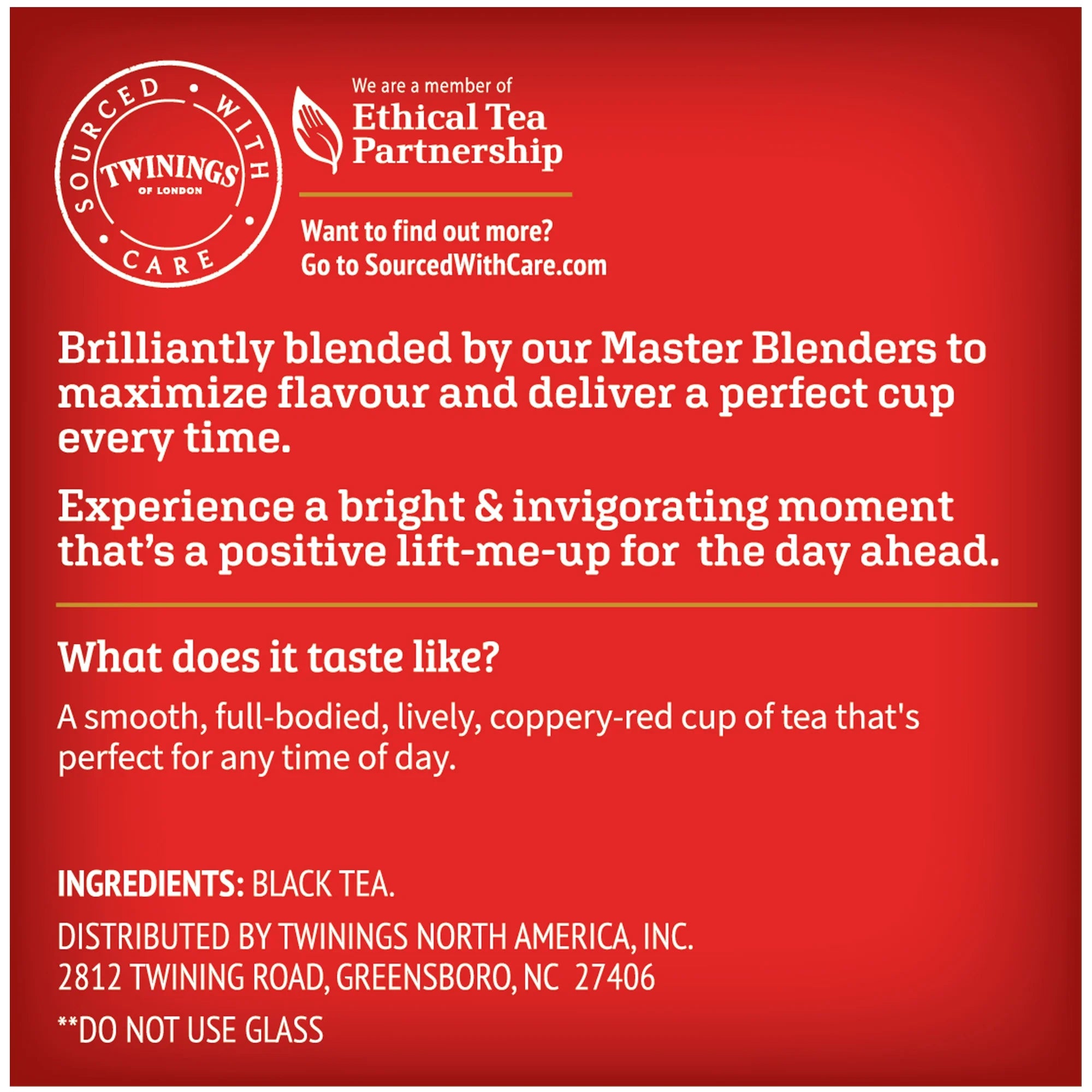 English Breakfast is our most popular tea. To create this well-balanced blend, we carefully select the finest teas from five different regions, each with its own unique characteristics.Tea from Kenya and Malawi provides the briskness and coppery-red colour while Assam gives full body and flavour. The robustness from these regions is complemented by the softer and more subtle teas from and Indonesia. The combination of these varieties yields a complex, full-bodied, lively cup of tea that it perfect any time of day.