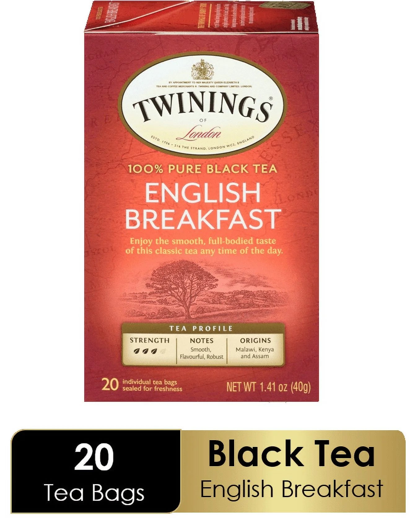 If you’re looking for a great tasting and enjoyable way to jumpstart your day with energy, black teas like Twinings English Breakfast Tea can give you the gentle caffeine boost you need. Our most popular black tea, Twinings English Breakfast Tea ingredients include high quality black tea leaves carefully hand-selected by a talented team of Master Blenders and Expert Herbalists. Smooth yet bold and full-bodied, our flavourful English Breakfast Tea offers rich, malty undertones with notes of mild sweetness. Beginning with the opening of Twining’s first coffee house in 1706, we have over 300 years of tea blending experience, choosing the same naturally beneficial plant-based ingredients that have been trusted for centuries to create our wellbeing drinks. Steeped in the heart of London’s tea culture, Twinings has held Royal Warrants from the reign of Queen Victoria through modern times and is trusted worldwide as a premiere tea expert. We proudly use the finest ingredients to create teas that not only support your wellbeing but also deliver the best-tasting, most flavourful experience possible. To enjoy the perfect cup of hot or iced Twinings English Breakfast Tea: Steep for 4 minutes for hot tea. For creamy sweet tea add milk and sweetener. To make iced tea, steep the tea bags in a small amount of boiling water for exactly 3 minutes. Gently remove the tea bags (do not squeeze them out) and add a larger quantity of cool or room temperature water to the pitcher. Serve over ice. English Breakfast Tea Ingredients: Fine black tea expertly selected from Kenya, Indonesia, Assam, Malawi and .