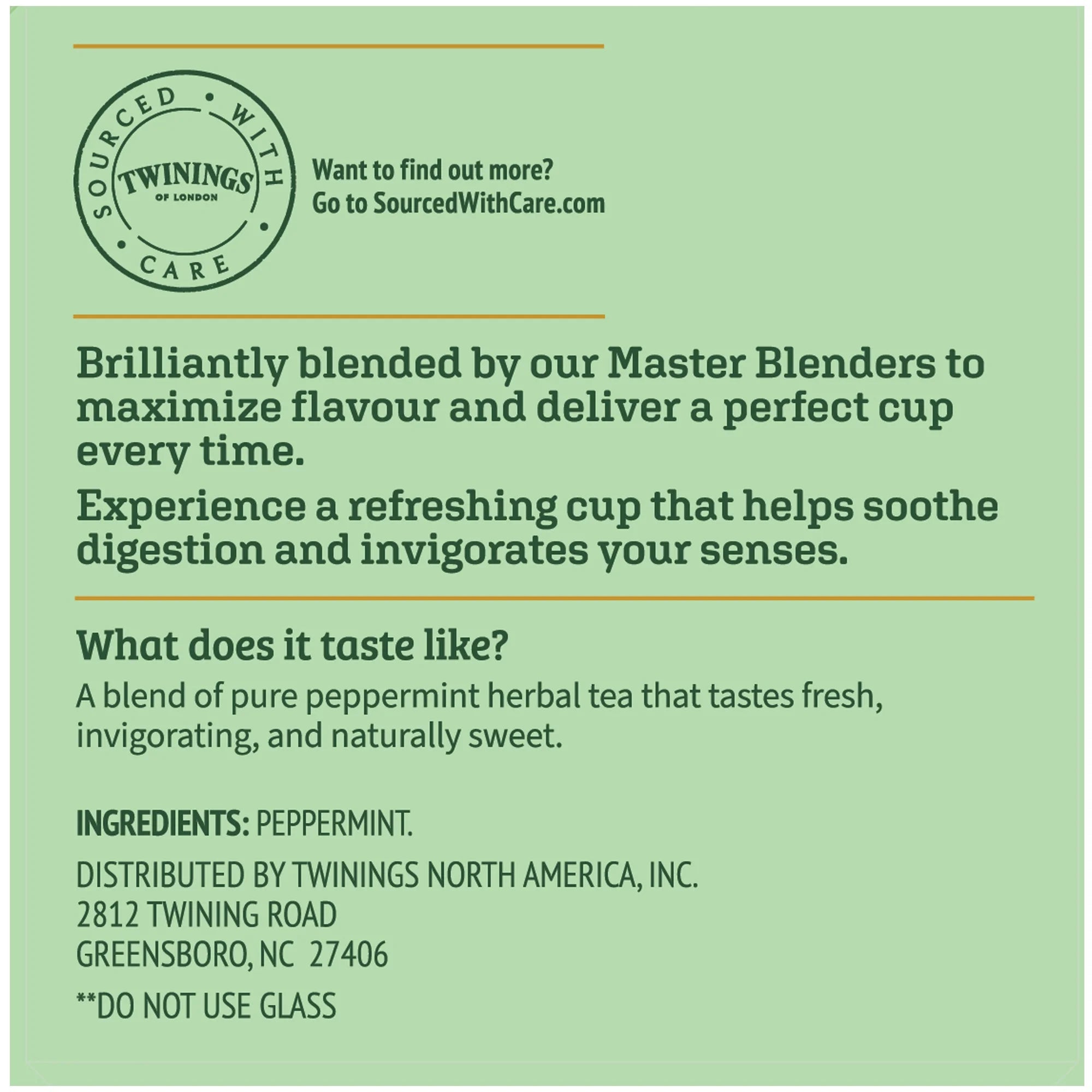 "Twinings 12 K-Cup Pods for Keurig, Herbal Tea with Pure Peppermint Flavor, Naturally Caffeine Free A refreshing herbal tea expertly blended using only 100% pure peppermint to deliver an invigorating tea with an uplifting aroma and mint taste. To brew the perfect cup, steep one tea bag for 5 minutes in boiling water. Herbs have a long history of documented use tracing back to Ancient Egypt, Ancient and to the beginning of Ayurveda science in India. Herbal teas can be made from any combination of flowers, leaves, seeds, roots, citrus or berry fruits herbs and spices-which is why the number of unique blends is virtually limitless. Chamomile, Peppermint, Ginger and Hibiscus are some of the most popular ingredients used today. At Twinings, we believe in living well and enjoying life. Backed by generations of trusted knowledge and ethical integrity, our Master Blenders are committed to delivering nature’s goodness and ensuring consistent taste and quality by sourcing the world’s finest herbs, fruits, and teas. From traditional teas to functional blends, Twinings encourages consumers to “Drink in Life” by celebrating the small steps that make wellbeing attainable and remain committed to an optimistic life that is well-lived, one sip at a time. "