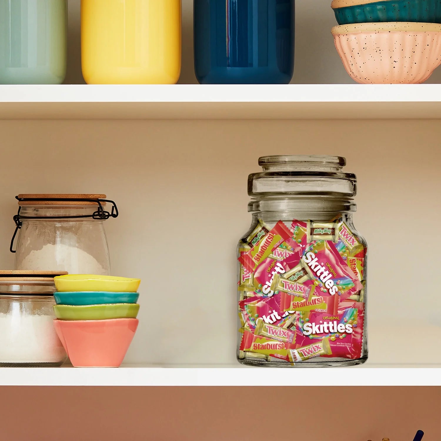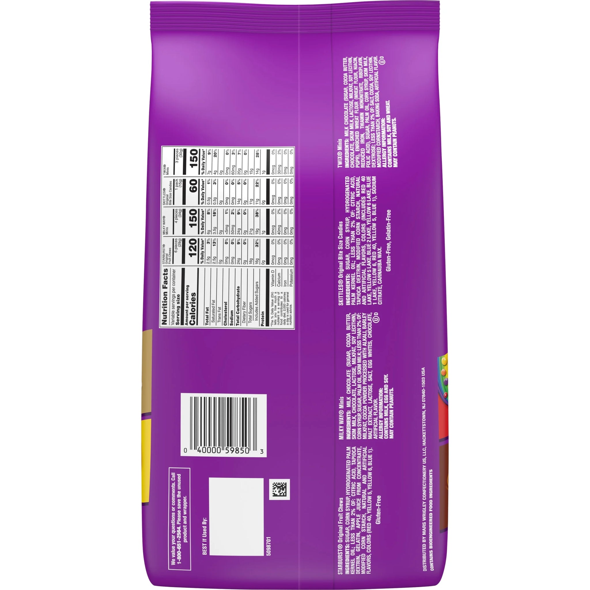 Delight in the classic combination of rich milk chocolate and mouthwatering fruit flavors with this exciting variety pack, featuring TWIX, SKITTLES, STARBURST, and MILKY WAY candy assortment! This party size bag contains individually wrapped packs of SNICKERS Original Minis chocolate bars, STARBURST Original Fun Size Fruit Chews, MILKY WAY Mini Chocolate Bars, and SKITTLES Original Fun Size chewy candies. Ideal for parties, movie nights, incorporating into your dessert recipes, or enjoyed as a fun and sweet afternoon treat this assorted bulk candy mix is sure to satisfy candy lovers of every kind. The holidays have never been sweeter. Treat and gift loved ones fun size and mini size packs of this variety assortment during any celebration or party. No matter the celebration or occasion, keep this milk chocolate and fruit candy assortment on hand. There is something for everyone. You can't go wrong! Add to your cart today.