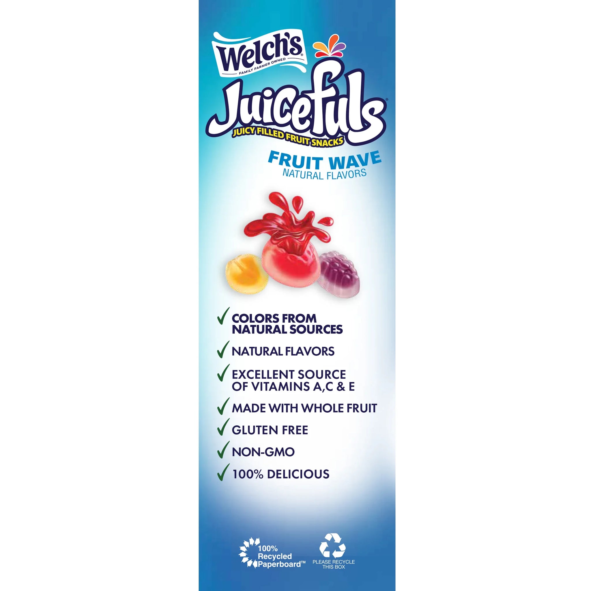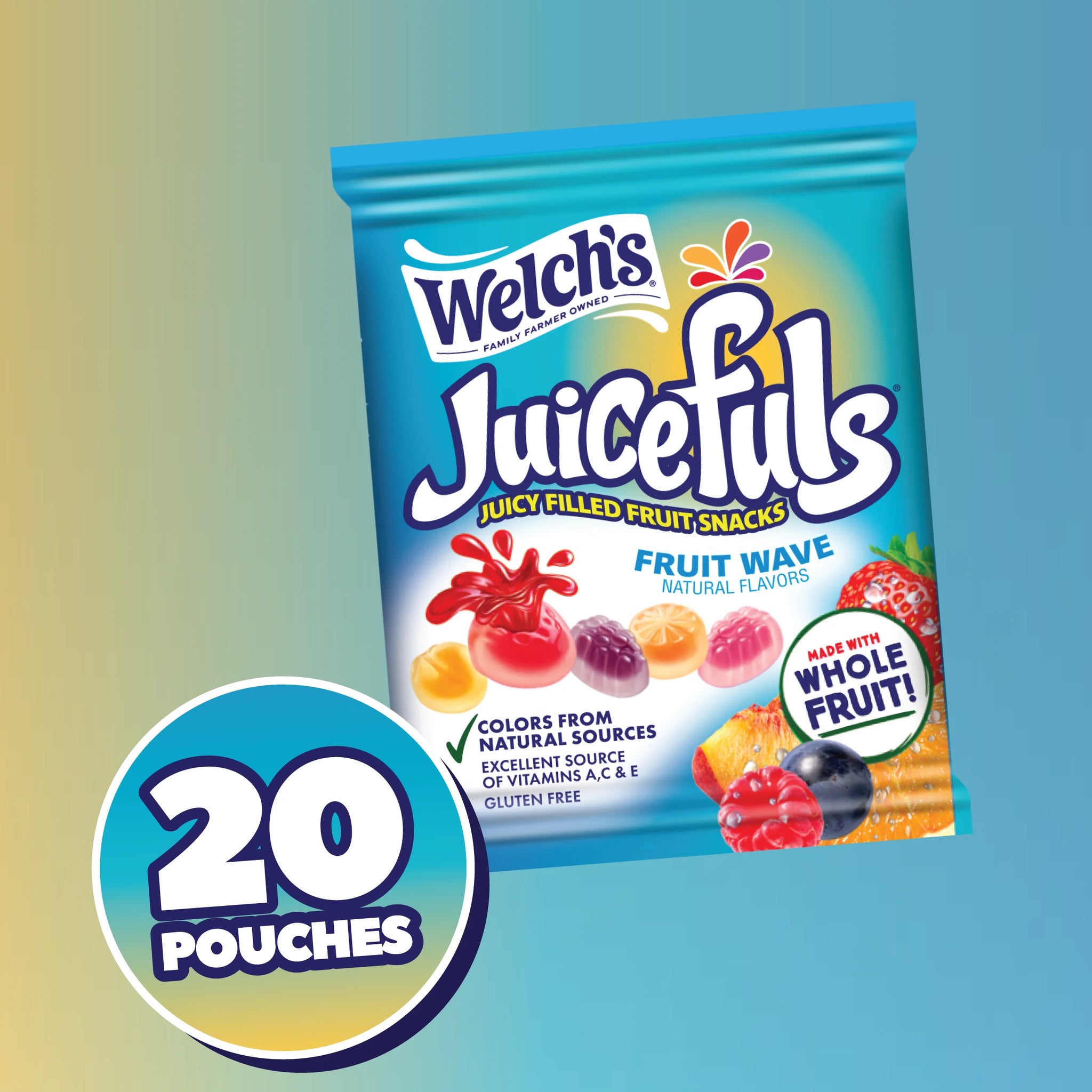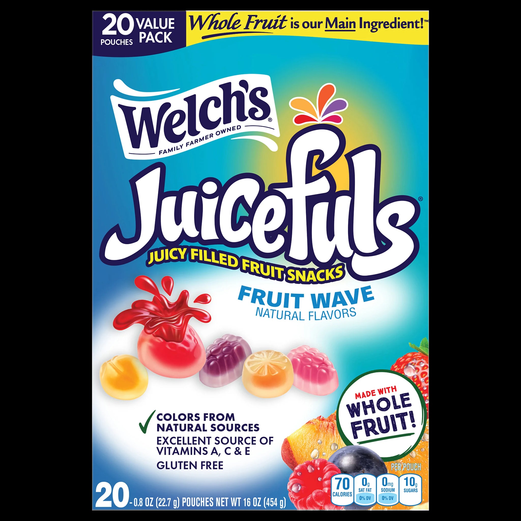 - Includes 20 snack packs of Welch's Juicefuls Snacks, Fruit Wave in a cardboard box