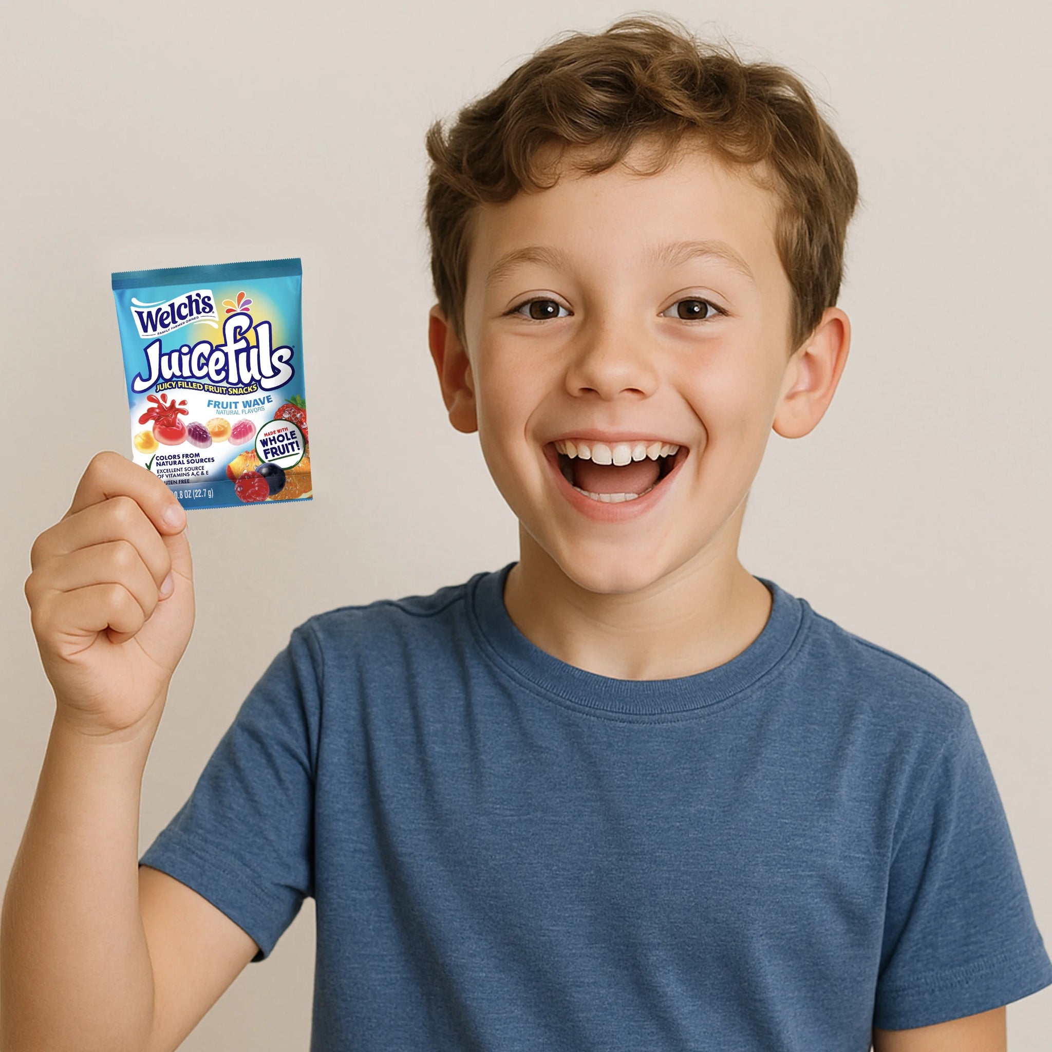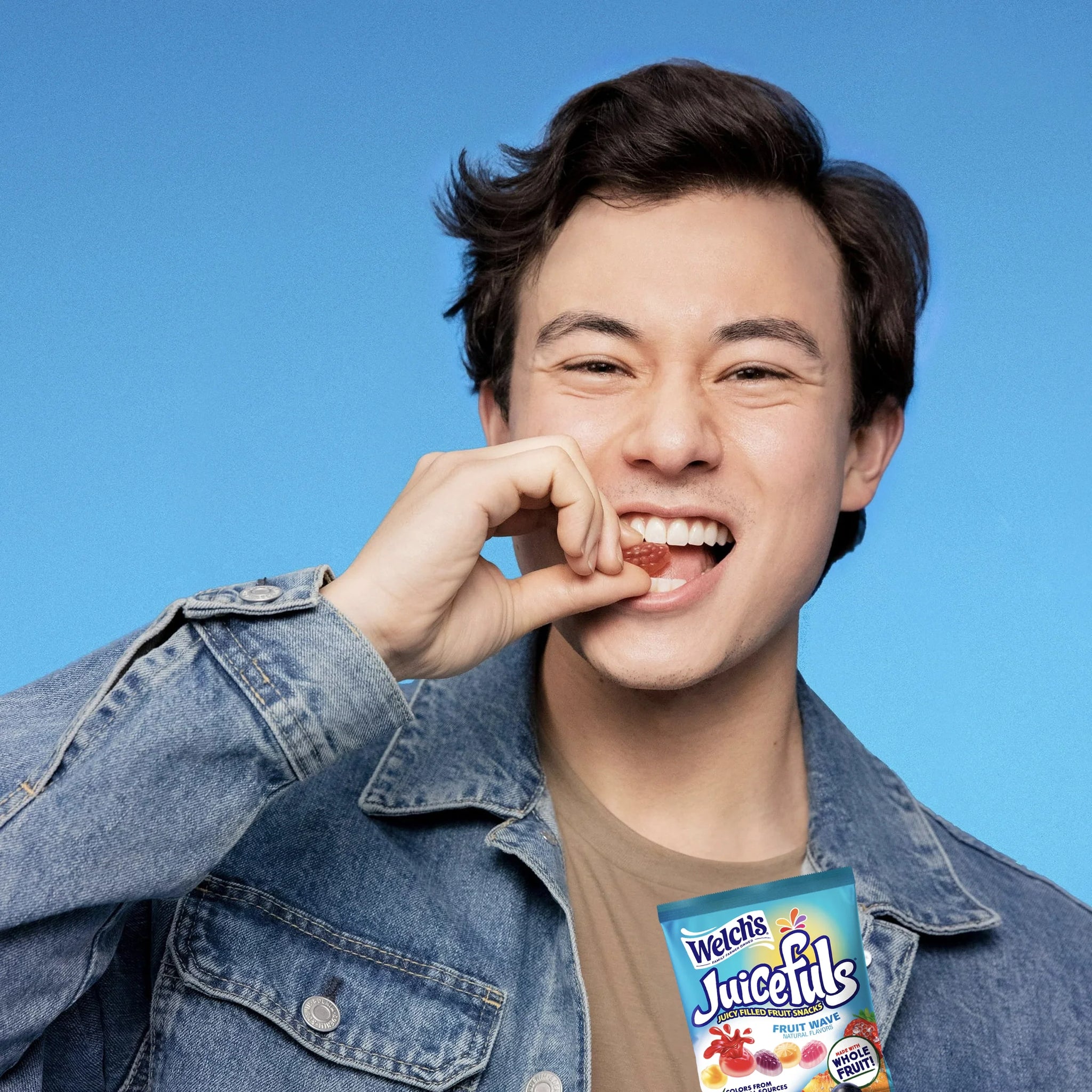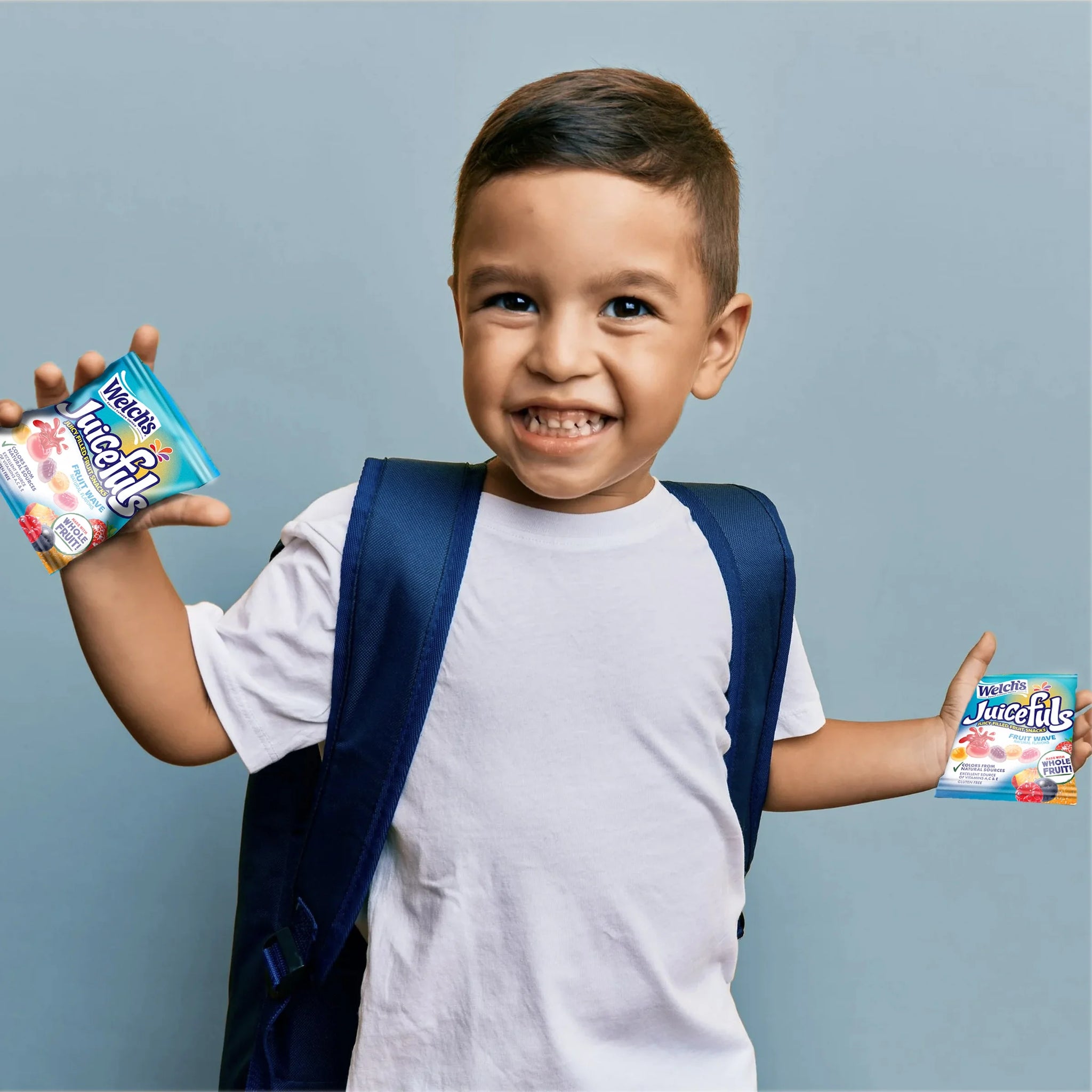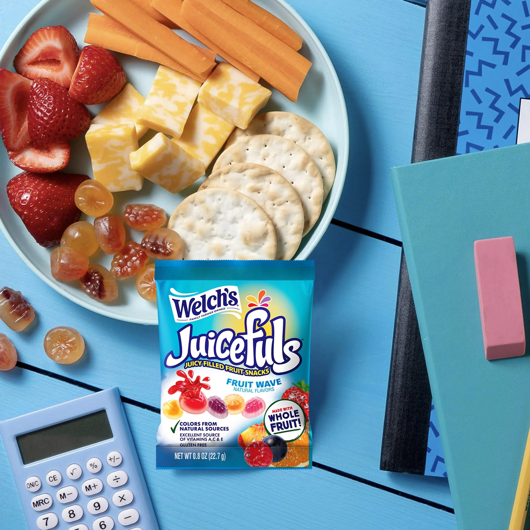 - Includes 20 snack packs of Welch's Juicefuls Snacks, Fruit Wave in a cardboard box